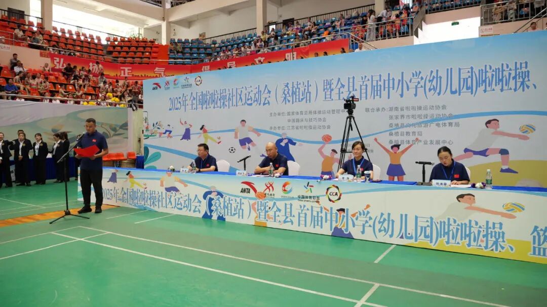 桑植融媒9月28日讯(记者 张芬)9月28日,2025年全国啦啦操社区运动会(桑植站)暨桑植县首届中小学(幼儿园)啦啦操、篮球表演操比赛在贺龙体育馆举行。县委常委、副县长宋云飞出席开幕式。