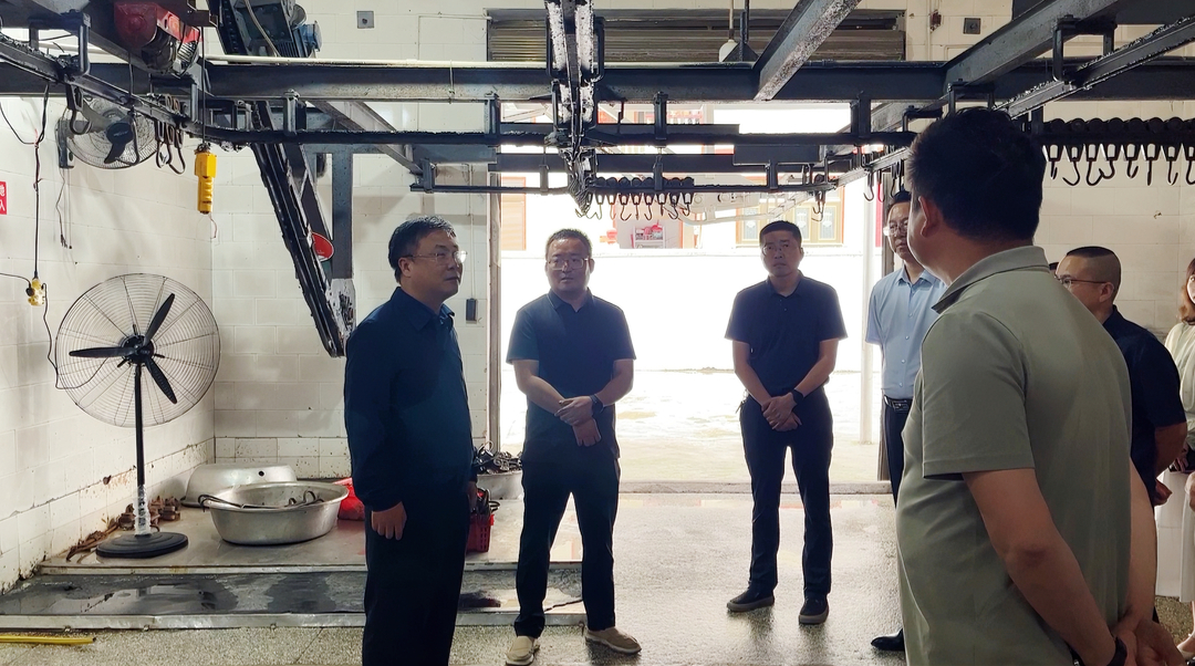在澧源镇高家坪社区的兴民屠宰场,曹飞实地察看了屠宰场运营、管理情况,详细了解问题形成原因,现场研究整改措施。