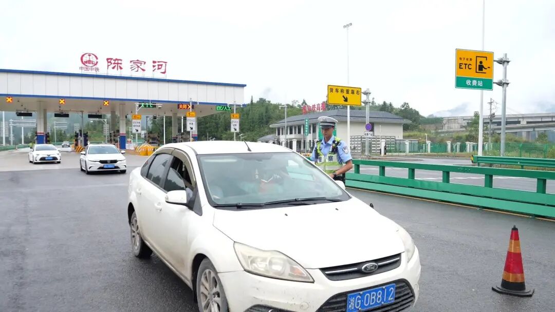 10月1日上午,在陈家河收费站出口,桑植大队民警李港正有序引导车辆接受检查。“您好,请出示驾驶证。”他一边核验驾驶人证件,一边细致排查超员超载、非法营运等隐患。尽管车流密集,检查点始终秩序井然。在桑植服务区,大家穿梭于停靠休整的车辆间,实时疏导,确保区域内通行顺畅。