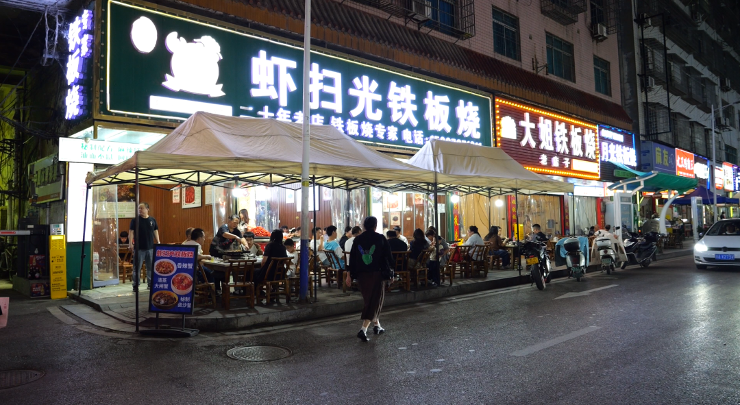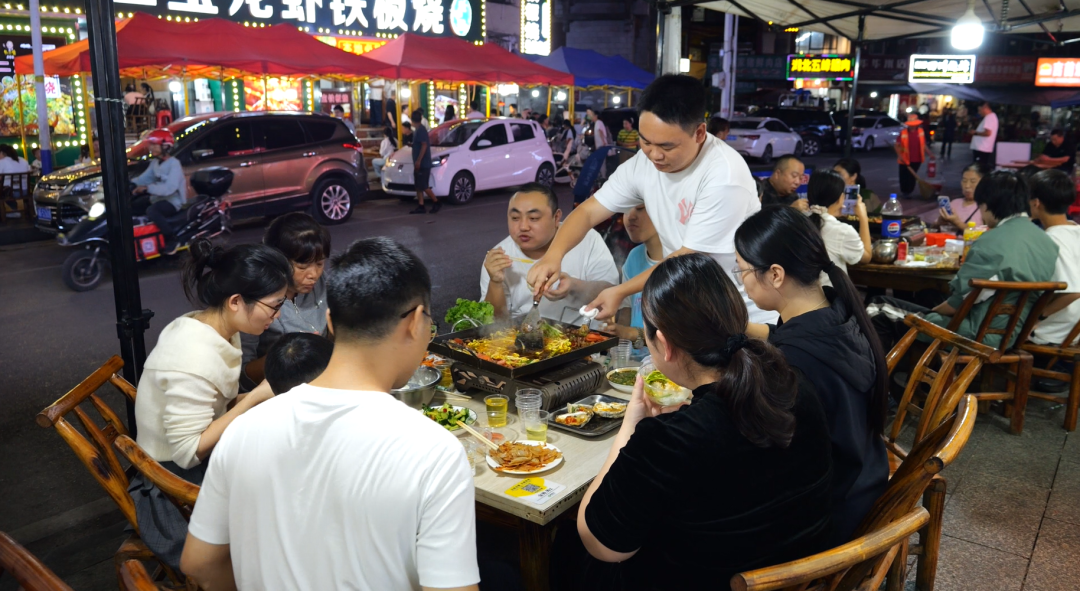 10月3日晚,南门峪夜市灯火通明,食客络绎不绝。三五好友围坐一桌,边品尝美食边畅聊生活,气氛轻松热烈。滋滋作响的桑植特色铁板烧、香气四溢的本地烧烤,几乎成为每桌必点。 随着桑龙高速的通车,区域往来更加便捷,也吸引了众多周边游客专程前来打卡体验。“在综艺看到汪涵他们过来吃桑植的铁板烧,听说这边铁板烧很有名,这次国庆就专门来桑植一趟,感受一下这边的夜生活。”湖北省前来游玩的邓先生赞不绝口。 面对激增的客流量,夜市商户们也做足准备,全力以赴保障用餐体验。“国庆这几天生意特别火,游客数量比平时翻了好几倍!”“虾扫光”铁板烧老板覃遵华笑着说道,“我们坚持每天精选新鲜食材,既要保证出品质量,也要让每位顾客吃得放心、吃得满意。” 升腾的夜市烟火,聚拢了人气,也点燃了消费热情。这个国庆假期,桑植夜市以其独特魅力,不仅满足了市民游客的味蕾享受,更生动展现了桑植“夜经济”的活力与潜力,为全县假日经济不断添彩。