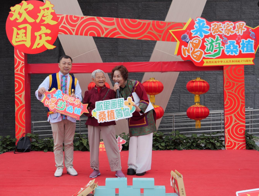 桑植融媒10月5日讯(记者 杨柳)10月4日,车流飞驰,龙山至桑植方向的桑植服务区变身“民歌课堂”,由县委宣传部统筹指导、县文旅广体局与县文联联合主办的“来张家界 唱游桑植”民歌互动活动持续进行中。 在服务区内,航空主题展、融入当地文化特色的“大国重器号”铁路车厢打卡点各具风情。当日新增的民歌舞台更是成为了人气焦点——过往游客上台学唱桑植民歌,即可获赠桑植白茶、月饼或九天洞门票。通过“以歌换礼”的互动形式,让非遗从静态展示变为动态体验。活动现场,《马桑树儿搭灯台》《门口挂盏灯》《和合二仙下天台》等经典曲目不绝于耳。77岁的龙山向奶奶用苗语高歌《东方红》,引得掌声雷动。“专程来看看贺龙元帅的故乡”,老人的质朴话语道出她的心声。 作为桑植新开通的交通动脉,桑龙高速正悄然改变着湘西北人们的出行版图。在服务区的停车区域,张家界本地车辆与湘西、湖北、重庆、四川等外地车辆比邻而停,印证着“一小时交通圈”带来的便捷。“昨天从桑植到宣恩,再到龙山,今天返回桑植,路上只花了个把小时。在宣恩时我们还开玩笑说,这里怕是来了半城桑植人!”桑植居民文艳群带着家人完成了桑植至宣恩再到龙山的短途旅行,返程时特意在服务区停留打卡。 对于途经的远方游客而言,这个服务区正是认识桑植的第一扇窗。江苏苏州的叶倩女士一家原本计划从武汉直驱张家界,却被服务区的热闹场景吸引驻足。“远远看到很多人,停下来发现这里设计新颖,桑植民歌很好听,人也特别热情,第一印象很好。” 从交通驿站到文旅“客厅”,高速架起了连心桥。在这个国庆假期,来自张家界与挂着各省牌照的自驾车辆,在此短暂交汇,又即将驶向下一段旅程,他们带走的不仅是桑植白茶、月饼和门票,还有一份对这片土地的温暖记忆。