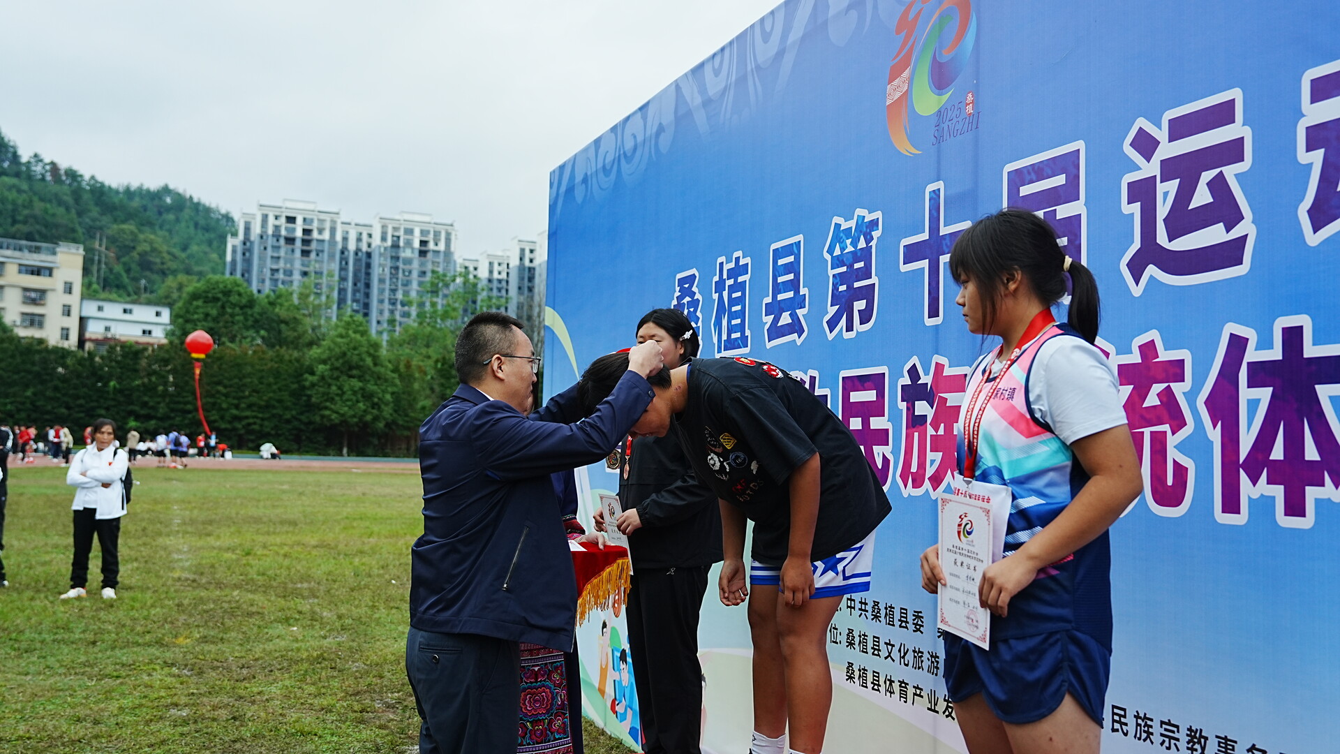 桑植融媒10月15日讯(记者 熊惠 肖君)10月15日,桑植县第十届运动会暨第五届少数民族传统体育运动会铁饼女子乡镇丙组比赛举行,来自洪家关白族乡的选手王烨宇以23.28米的成绩,夺得本届运动会首金。县委常委、宣传部部长王玉成为其颁奖。