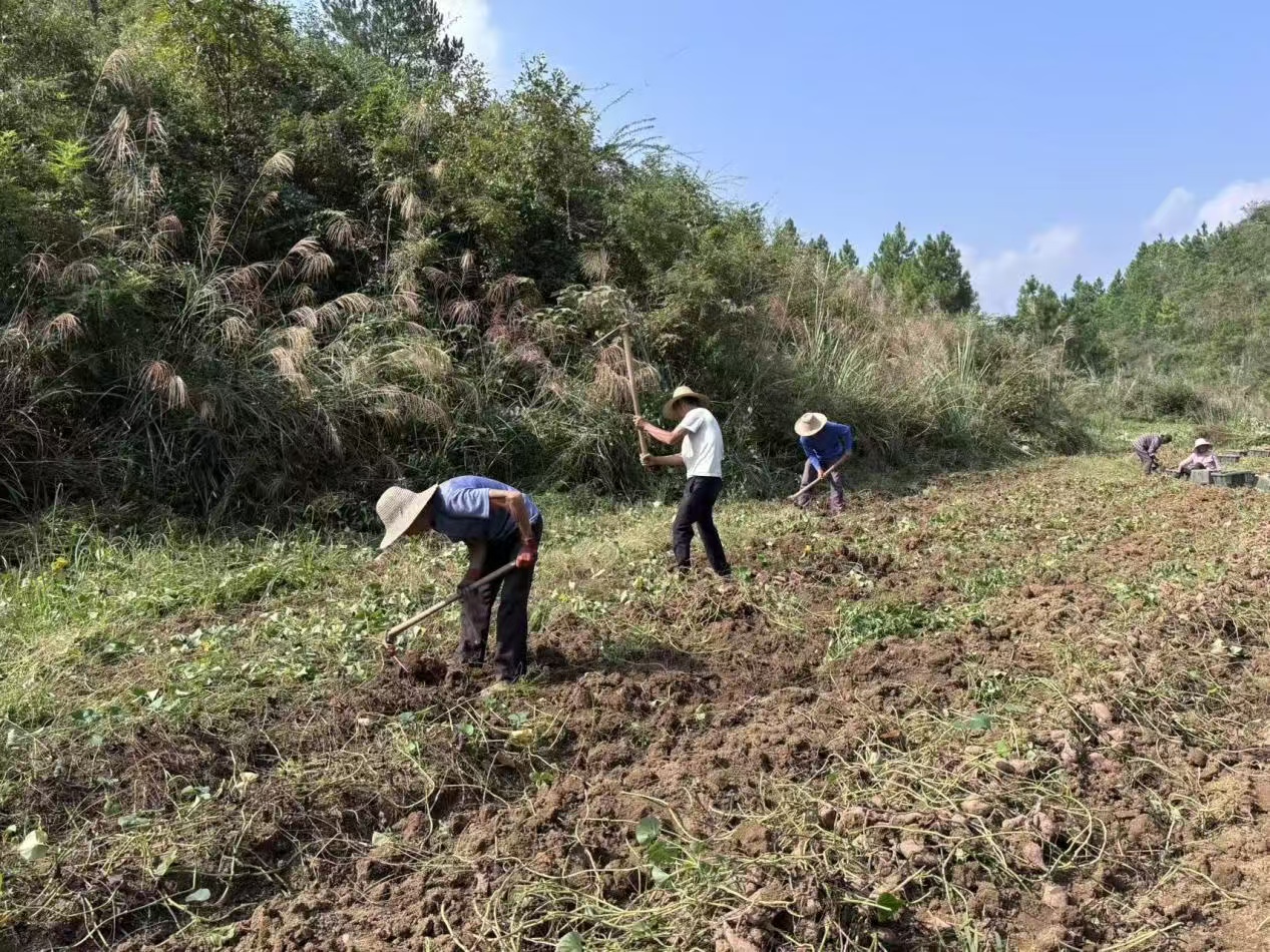 紧接着是最考验手艺的挖薯环节。村民们顺着垄边小心掘进,一锄头下去,再轻轻一撬,一窝窝小香薯便完好无损地露了出来。“挖薯就像接生,要格外小心,”张大叔笑着比喻,“破了相就可惜了。你看这品相,蒸熟了肯定粉糯香甜!”