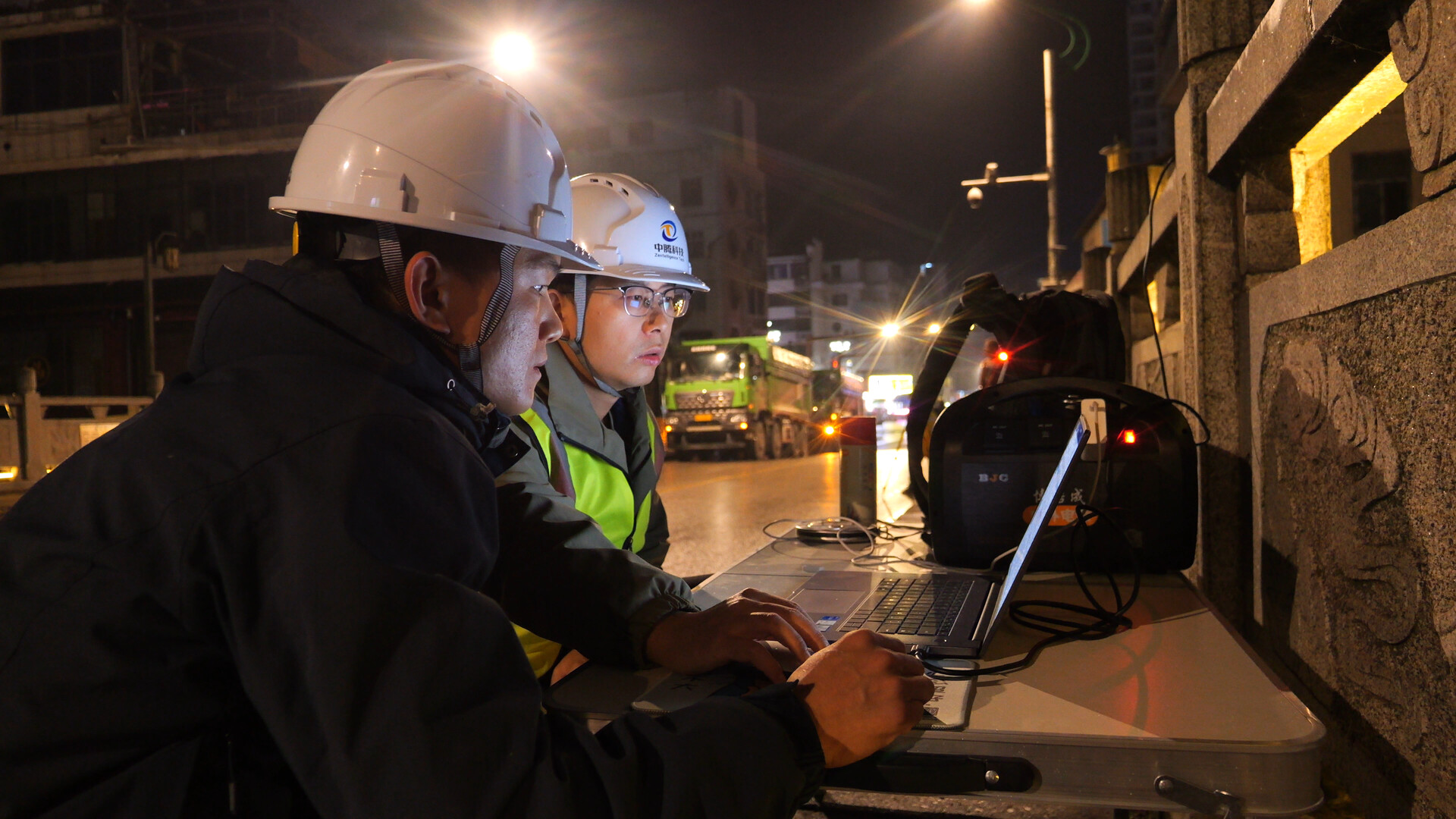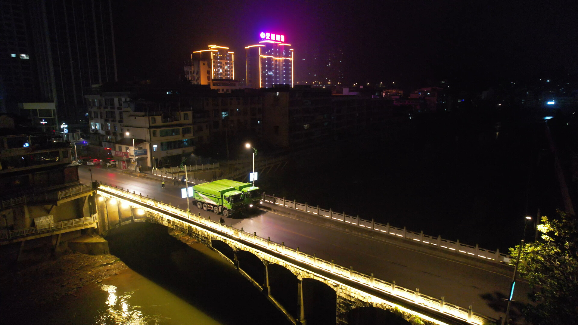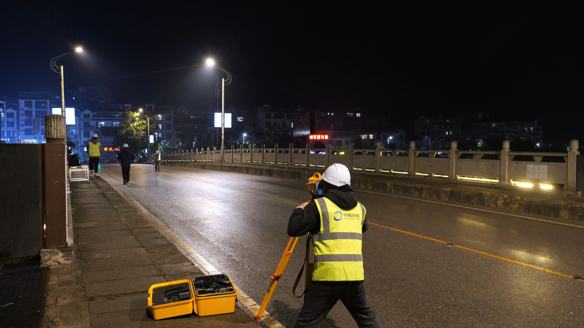 10月30日凌晨,在酉水桥路段,检测人员用桥梁检测车、无人机、桥梁挠度仪等设备,对桥梁进行荷载试验检测。检测范围涵盖挠度、应变、桥梁模态等关键内容,采用“上观其面,下查其实”的科学检测措施,确保不放过任何一个可能存在的安全隐患。