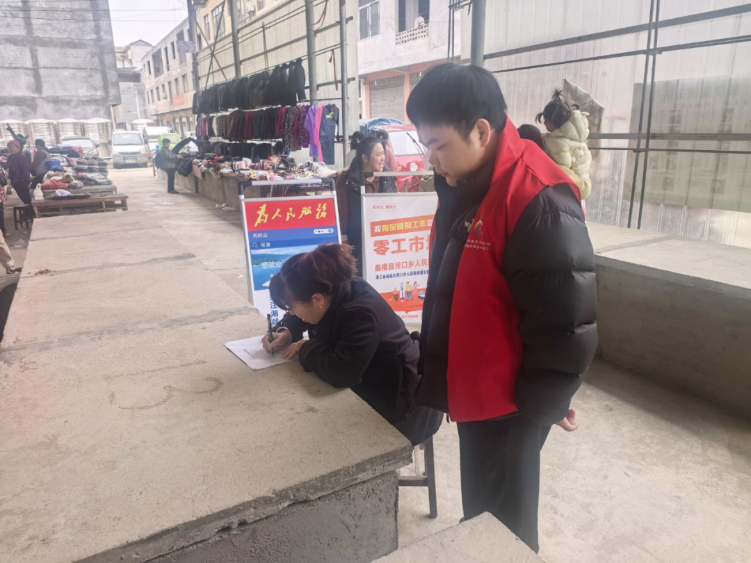 当天,河口乡农贸市场内设立了“零工市场”宣传点,工作人员专门为村民答疑解惑,提供个性化就业指导;志愿者们则热情地向过往村民发放宣传单页,积极宣传就业政策、讲解求职技巧,吸引了众多村民驻足咨询。