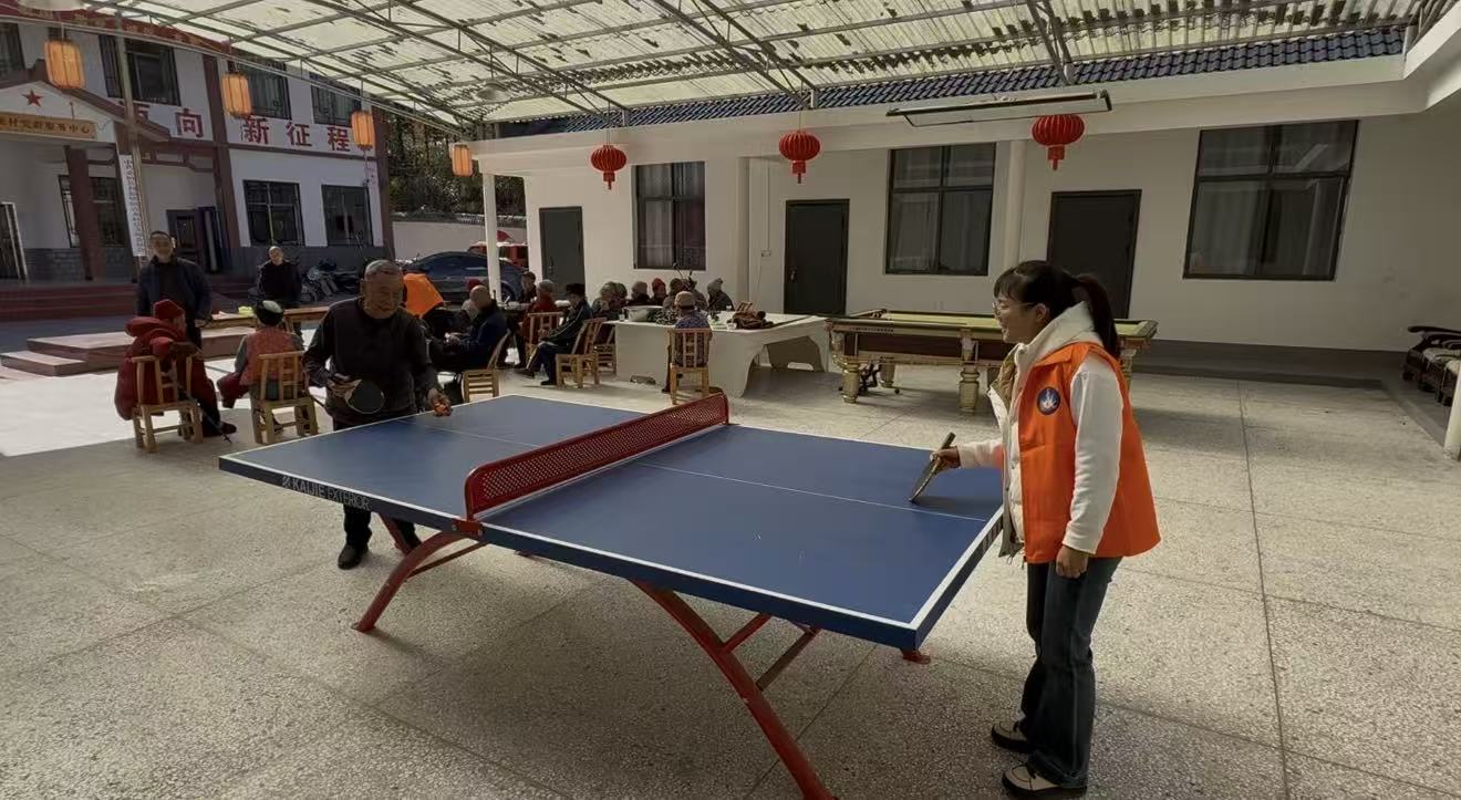 乒乓球桌边,一位精神抖擞的长者正与义工切磋球技,你来我往间传出阵阵欢笑。这里没有华丽的装饰,却有最朴实的幸福——是餐盘里冒热气的家常菜,是递纸巾时不用言说的默契,是球拍相击时迸发的生命力。这方寸之间的烟火气,藏着岁月静好的温柔,更跃动着新时代农村老人独有的精神光芒。