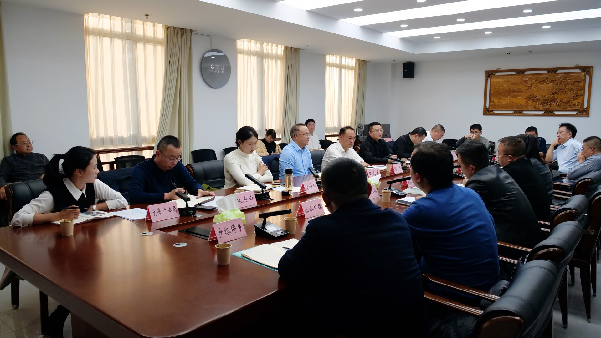 会议听取了相关乡镇及交旅集团关于“桑植水集”项目前期工作进展、当前存在问题及下一步工作计划的汇报,各参会单位结合职能职责,围绕项目规划、要素保障、协同联动等方面深入讨论,并提出建设性意见建议。
