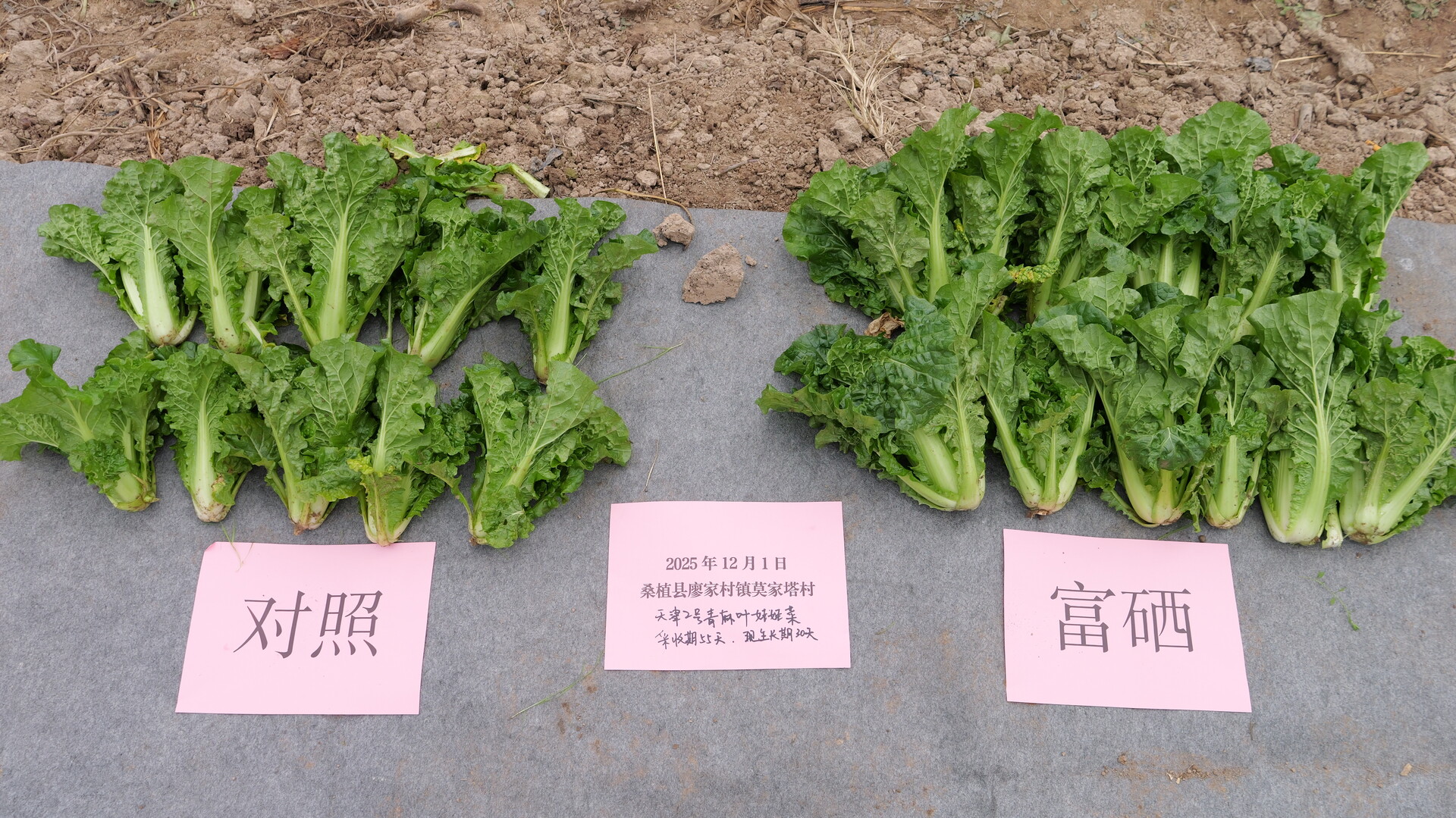 示范田中,采用富硒技术种植与常规对照种植的娃娃菜形成鲜明对比。富硒娃娃菜植株健壮、生长势明显更旺盛,叶球更为紧实饱满,色泽鲜亮均匀,抗病性更好,娃娃菜整齐一致、商品率高。现场,工人们有条不紊地对富硒娃娃菜进行采收、分拣和装箱,准备将这批优质富硒蔬菜发往市场。
