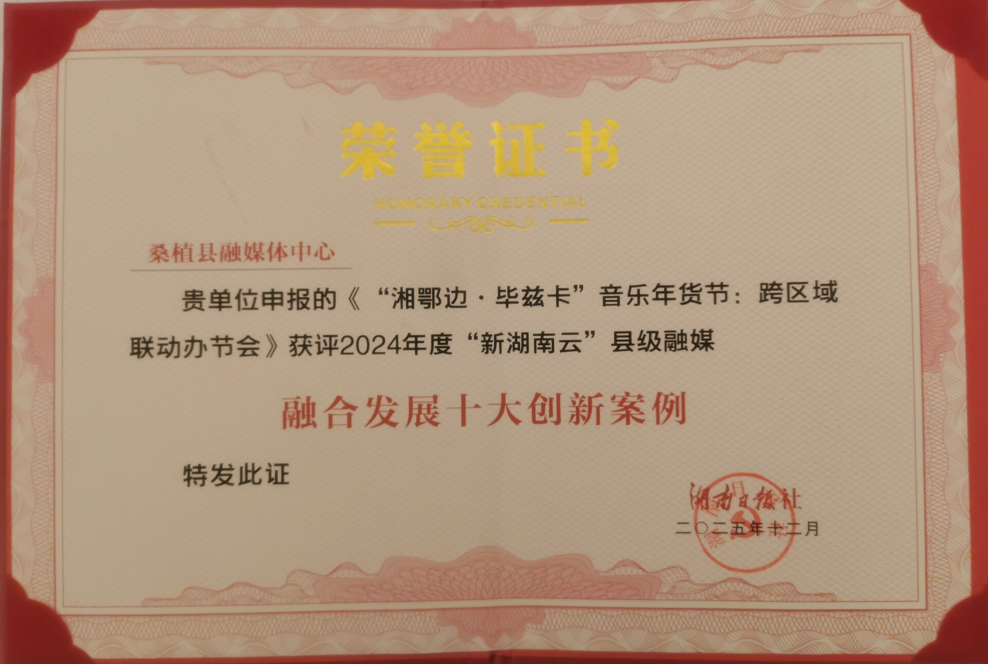 桑植融媒12月19日讯(记者 张芬)12月18日,2024年“新湖南云”县级融融合发展成果评选发布会在祁阳市举行,桑植县融体中心报送的《“湘鄂边·毕兹卡”音乐年货节:跨区域联动办节会》案例获评2024年度“新湖南云”县级融融合发展十大创新案例。