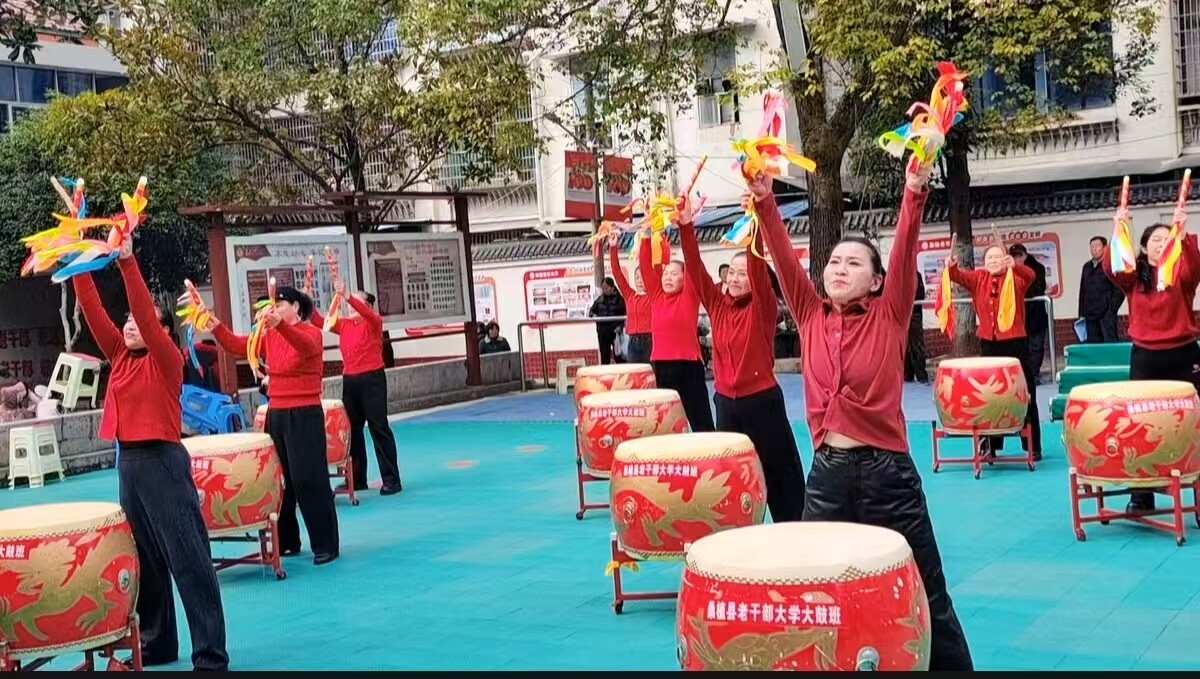 随后,各个班级的节目也相继亮相,民族舞、瑜伽、仗鼓舞等节目生动展示了学员们健康向上的生活态度和艺术风采。大鼓表演中,铿锵有力的节奏将现场氛围推向高潮,为本次活动画上了圆满的句号。
