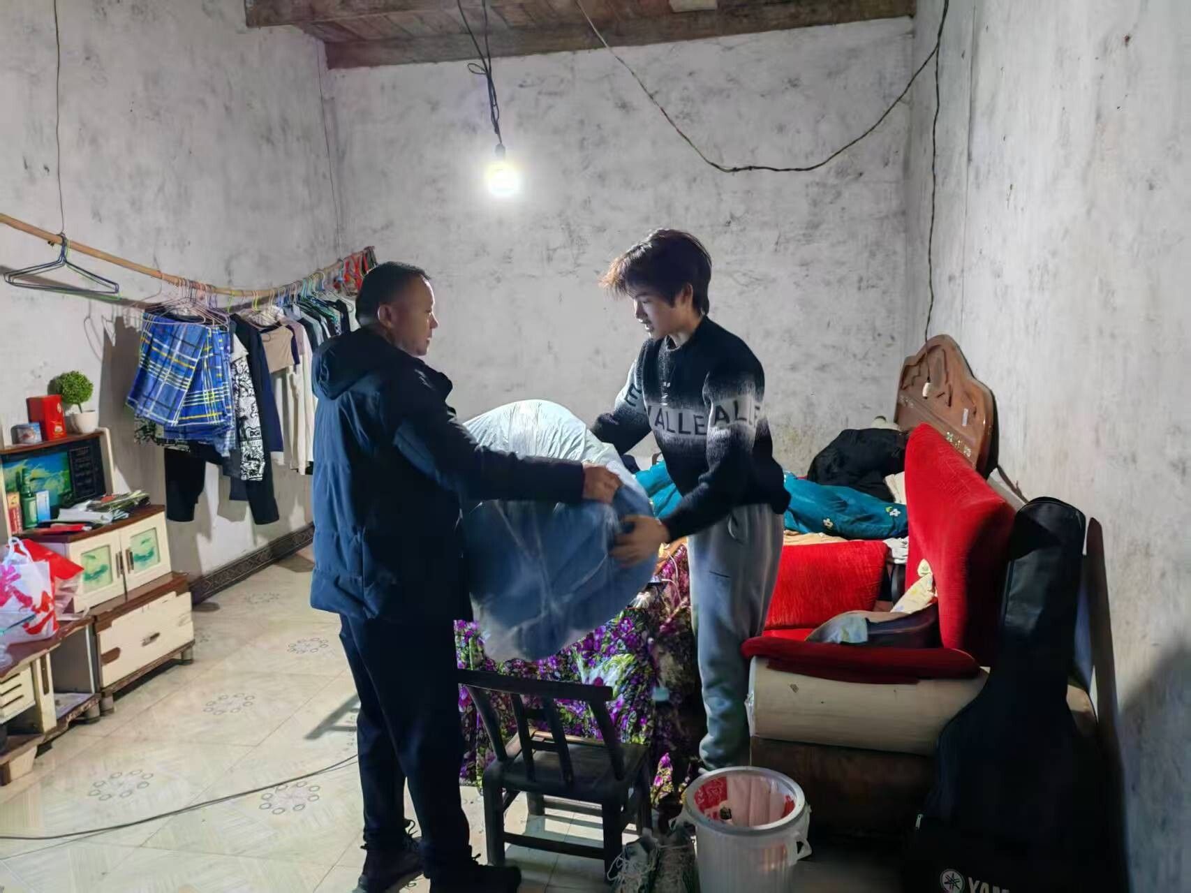 镇、村两级干部主动靠前,深入开展敲门行动,逐户宣传低温雨雪冰冻天气防范知识,为困难群众送上棉被等防寒物资,以暖心举措筑牢安全防线、传递冬日温情。