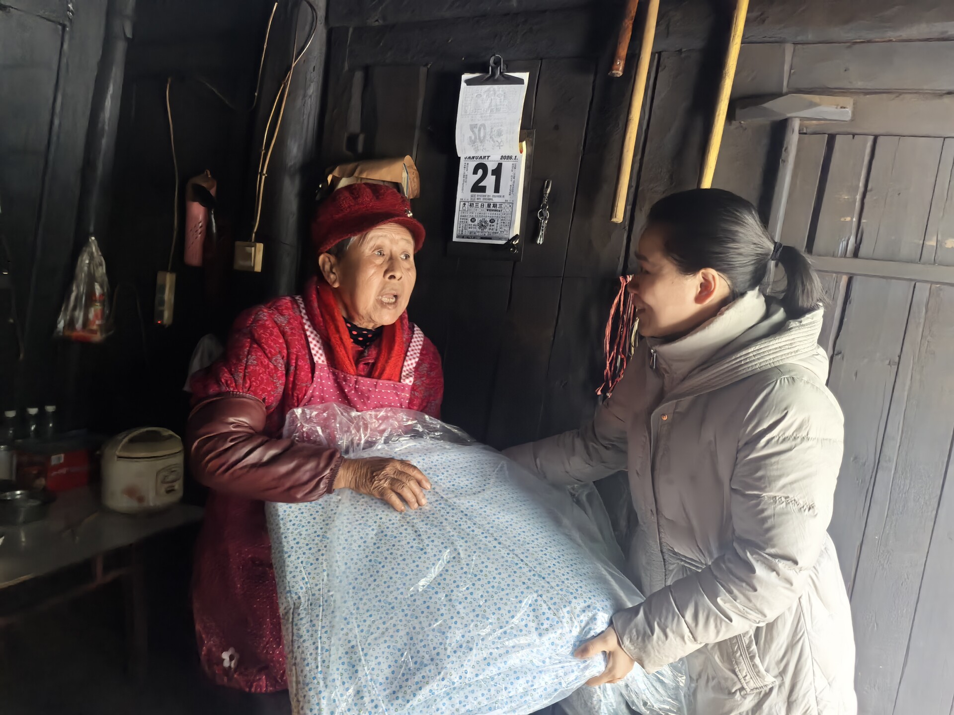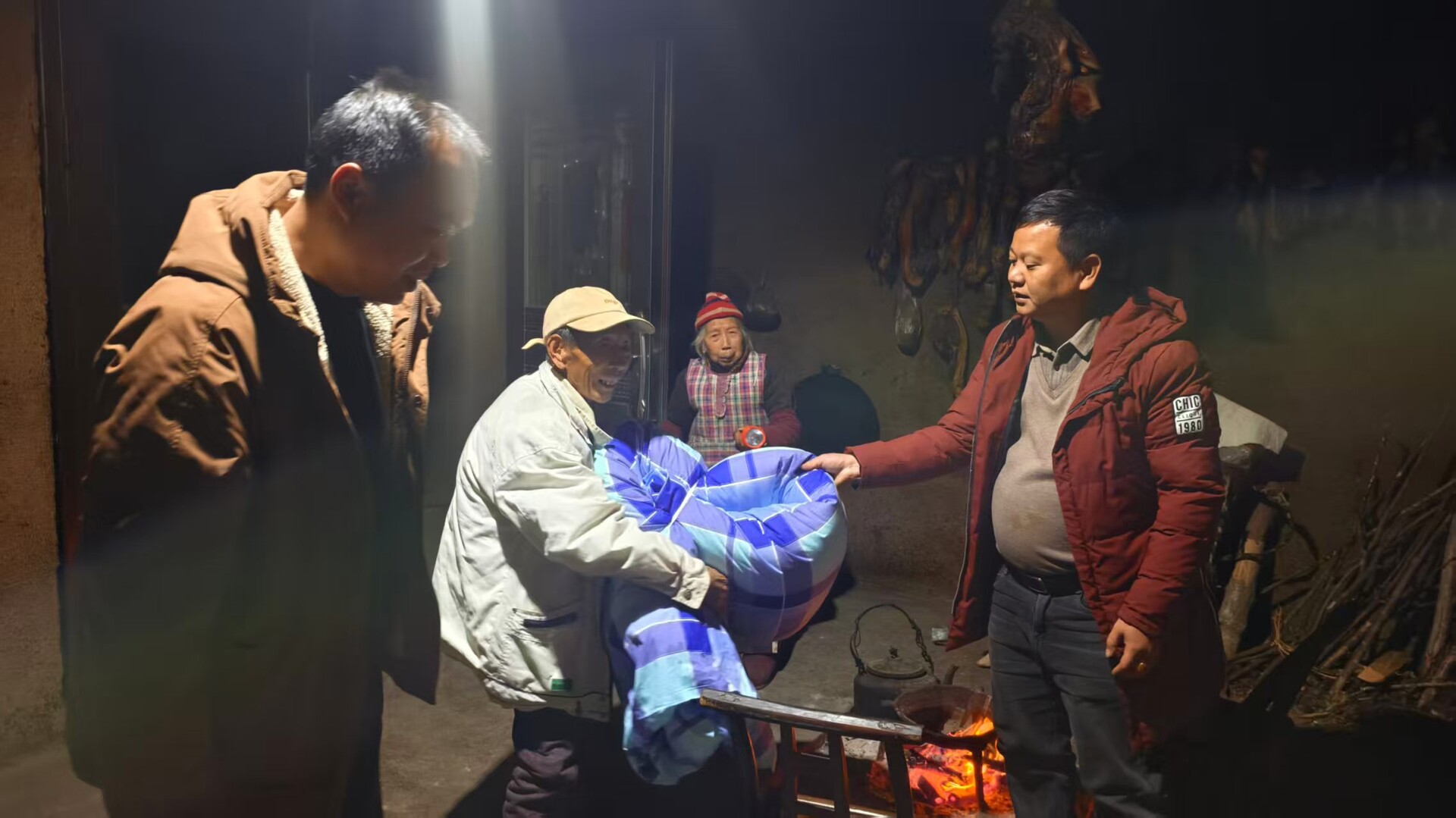 桥自弯村与李家垭村的行动延续至夜晚。村干部和志愿者们夜间再次入户排查,重点查看弱势群体家中取暖、用电安全及御寒情况,为部分家庭补充了应急物资,确保寒潮期间持续关怀不间断。