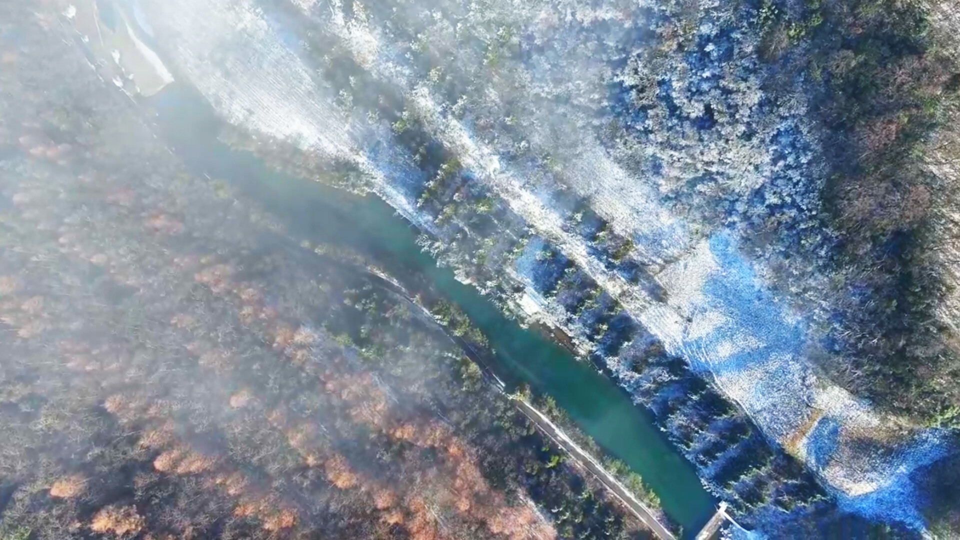 当霞光映丘陵,雪岭若隐若现,林间古木凝霜挂雪,山间溪涧冰棱垂崖,静谧中藏着灵动,雾凇晶莹剔透,松针裹冰,风过簌簌落玉,与湖面光影交错间,随手一拍皆是水墨丹青。不少冬游爱好者纷至沓来,沉浸式体验冰雪风光与山野乐趣,或徒步山间赏冬日盛景,或漫步河畔观雾凇奇貌,尽享冬日独有的惬意。