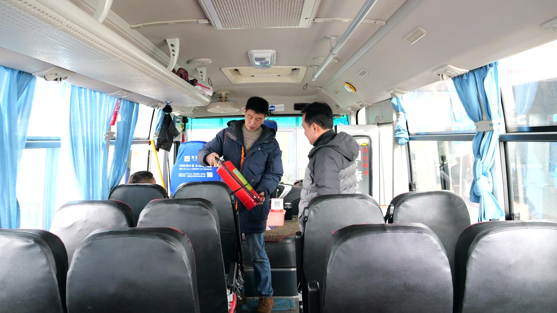 随后,检查组前往桑植汽车东站,对站内客运车辆的安全状况及应急准备进行细致排查,重点查看了车辆是否随车配备防滑链、三角木等冬季防滑应急物资,并对车载安全锤、灭火器等安全设备的性能状况及有效期进行了逐一核对,确保关键时刻拿得出、用得上。