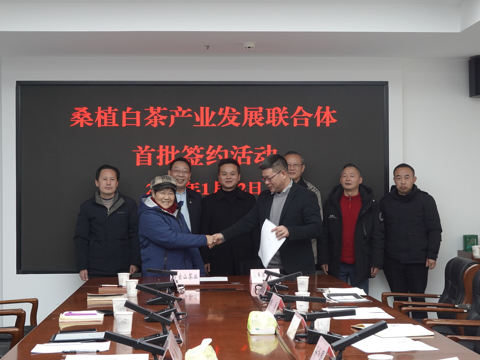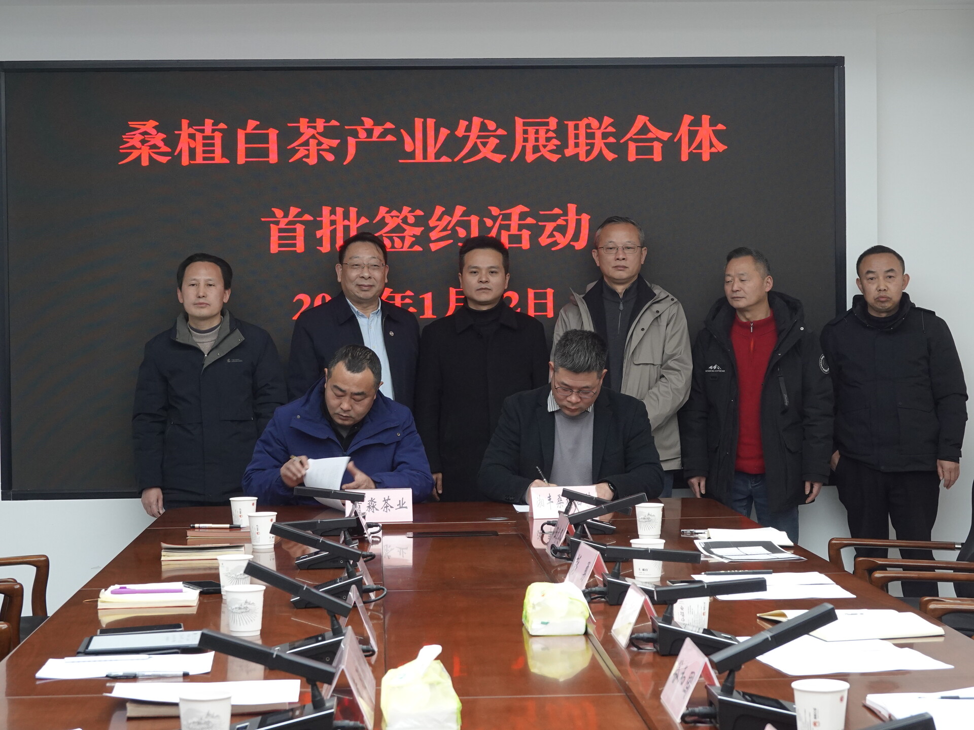 仪式上,湖南湘丰桑植白茶有限公司与张家界西莲茶业有限责任公司、张家界万宝山茶业有限公司、桑植县硒流塘茶叶种植专业合作社、桑植县清淼茶业有限公司四家首批意向成员企业现场签署了合作协议。