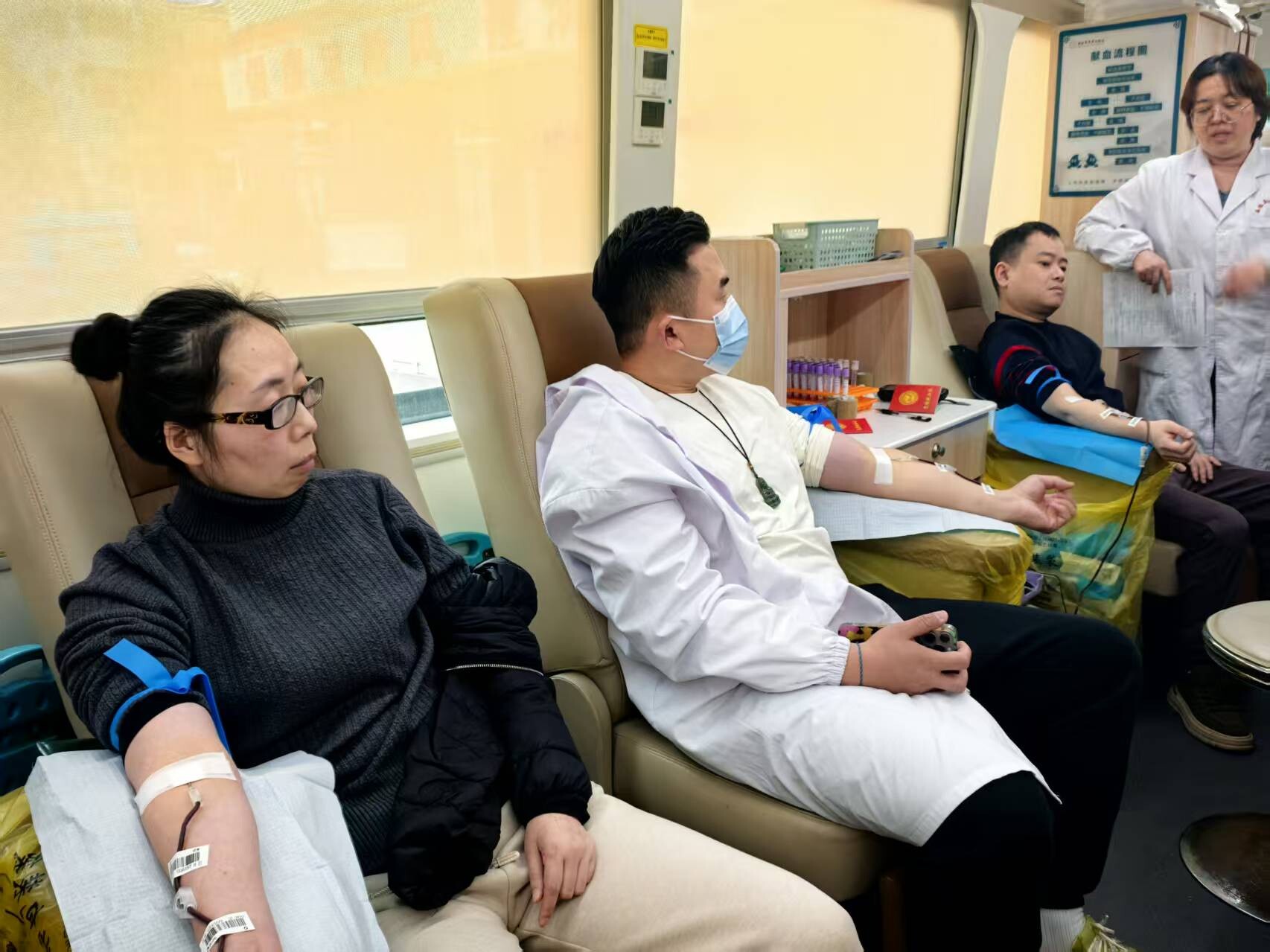 当天上午,在该院急诊科门口,前来参与义务献血的医务人员利用工作间隙陆续赶到现场。他们在工作人员的指引下,依次填写献血登记表、接受健康问询、进行血液初筛,随后有序进入采血区捐献热血。