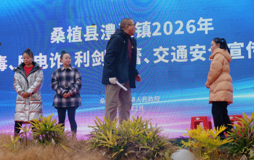 桑植融媒2月4日讯(记者 高丽文)2月4日,澧源镇开展2026年禁毒、反电诈、利剑护蕾、交通安全宣传活动,以群众喜闻乐见的形式,把安全知识送到群众身边,切实筑牢辖区平安建设防线。