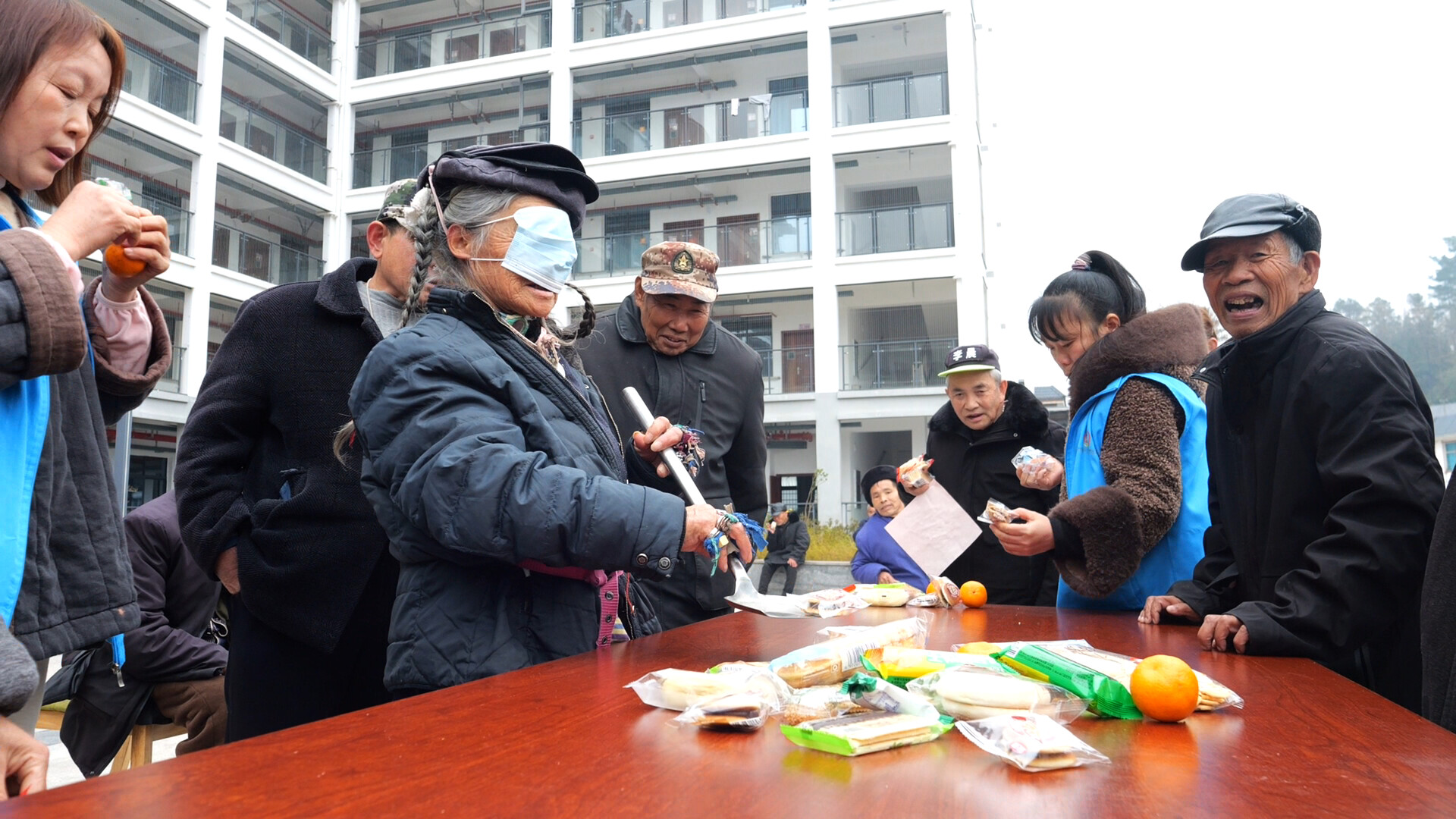 “往左一点,再往前伸一点点!”“慢着慢着,前面就是糖果堆啦!”,一旁观战的工作人员和其他老人自发组成“助威团”,齐声支招呐喊,欢笑声、掌声此起彼伏。有的老人一铲下去便“战果丰硕”,摘下眼罩时看到自己的“战利品”,脸上瞬间绽放出灿烂的笑容。今年79岁的陈广实捧着满满一碗零食,笑得合不拢嘴:“蒙着眼睛铲零食太新鲜了,好久没这么开心过!有这么多伙伴和工作人员陪着,在养老院一点都不孤单,这年味比家里还浓!”