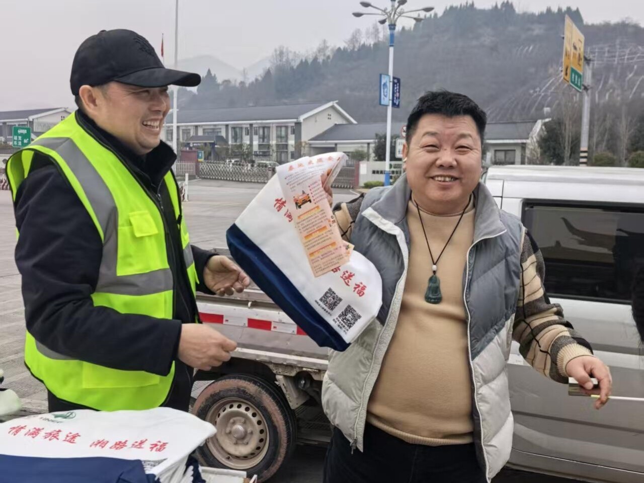 “师傅,这是春运安全出行指南,里面有冬季山区行车注意事项和应急求助电话,您长途驾驶多留意路况。”在桑植东高速出口志愿服务岗,身着统一标识服装的志愿者们精神饱满、笑容热忱,主动上前为每一位过往司乘递上宣传资料与新年问候。他们化身“安全宣传员”,结合桑植山地路况特点,耐心讲解低温天气下路面防滑、团雾路段避让、紧急情况处置等实用知识;针对部分旅客不熟悉路线的情况,志愿者们细致指引前往城区、景区及周边乡镇的最优路线,同步告知高速服务区、加油站等便民点位信息,将平安出行的理念与贴心指引传递给每一位行人。