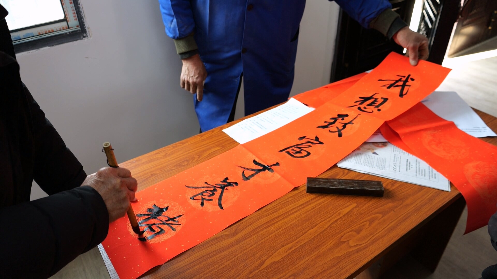 “贴春联是我们千百年来的传统习俗,今天很多书画家过来写春联,我也过来请老师写一副,图个好兆头,回家贴上,新年的喜庆氛围立马就有了。”官地坪镇梯市村村民邹先富手持刚写好的春联开心地说道。