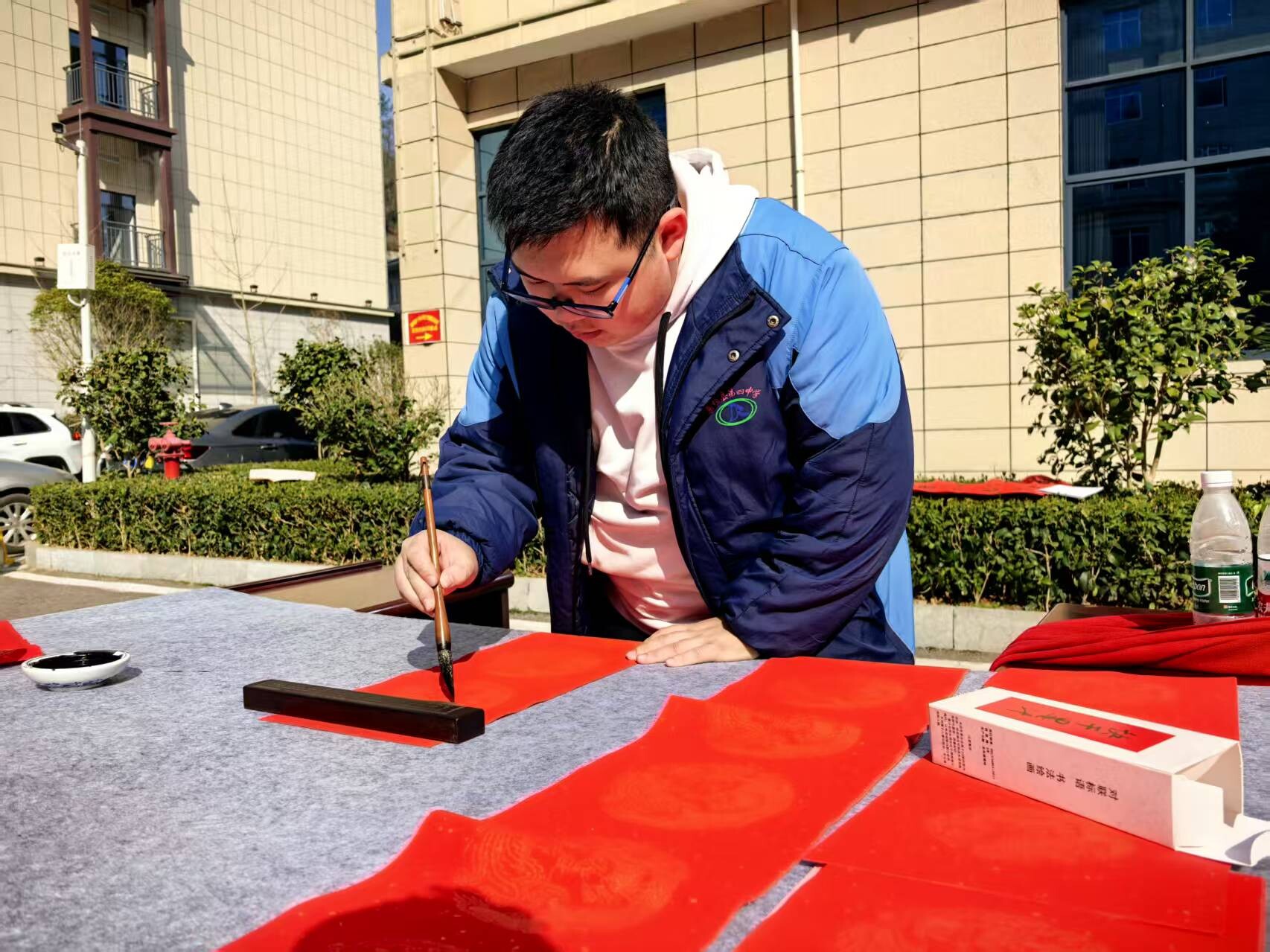 在笔走龙蛇间,“一帆风顺全家福 万事如意满门春”等一副副吉祥春联泼墨而成。干部职工有序挑选、领取,并小心晾干墨迹。红纸辉映、笑语融融,洋溢着浓浓的温馨年味。