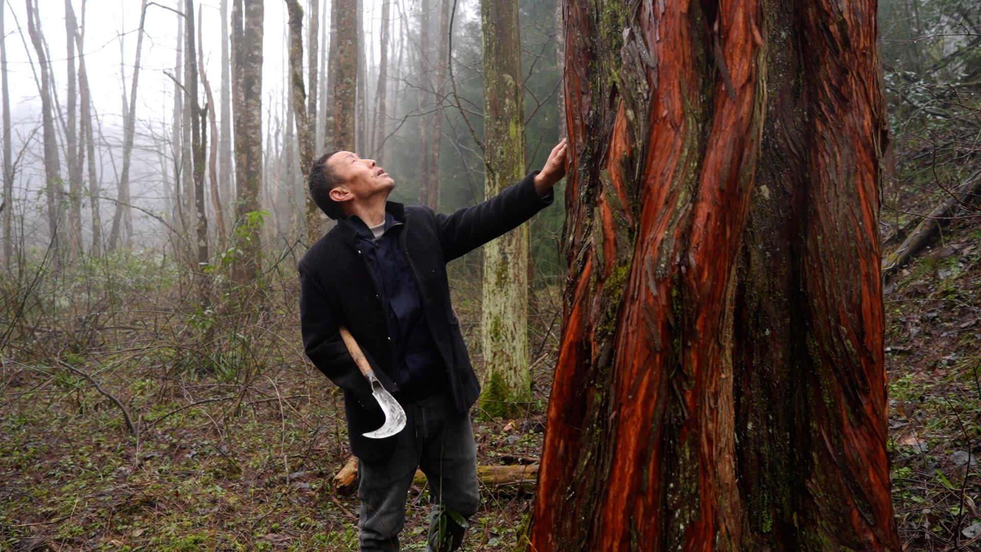 春雨淅沥,暮霭沉沉,贺学员起身又往林间走去。一踏入熟悉的林海,他的话便多了起来,对沿途的珍贵植物娓娓道来,如数家珍。他手持镰刀,身着制服,身影与茫茫山林融为一体。此刻,周围好像回荡着他片刻前接受采访时的一句话:“我想在这座山林里,落叶归根。”