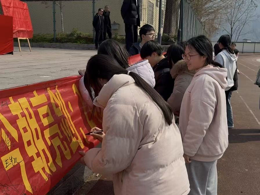 大会还进行了班级口号展示与师生签名活动。倒计时牌的正式开启,标志着中考百日冲刺的征程正式启航,全体师生携手走过“成功门”,寓意着跨越挑战、迈向成功的美好期许。