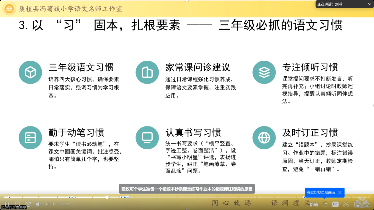 据悉,活动自2月8日启动,共完成了六期主题分享,覆盖写字教学、朗读实效、语文要素落实、课堂管理能力、核心素养培育、青年教师成长等一线教学核心议题。各团队紧扣教学痛点,严格遵循“精读原著—结合案例—反思交流”的流程精准破题。
