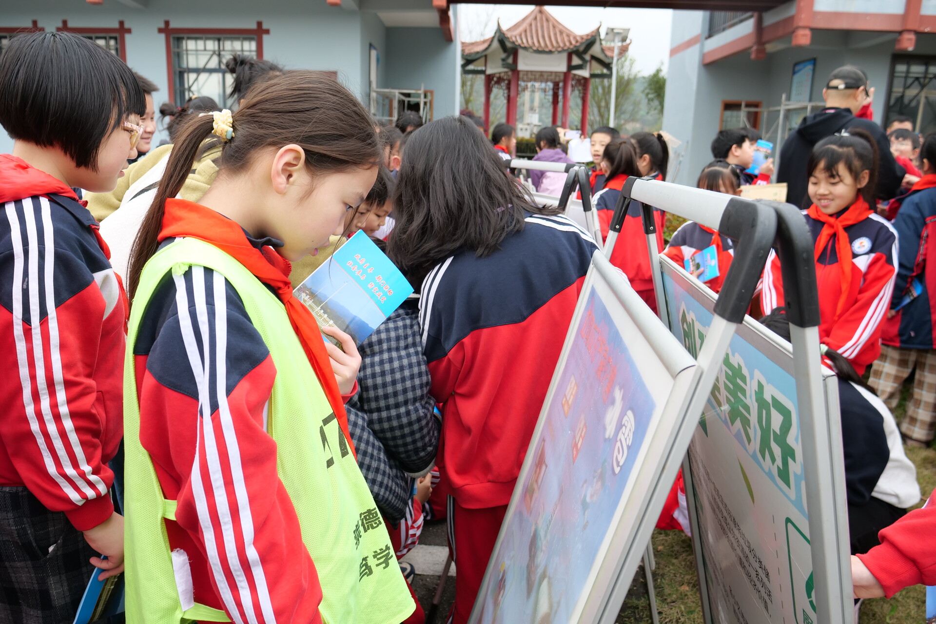在县气象站工作人员的引导下,同学们分批次参观了气象观测场与气象科普栏。工作人员用通俗易懂的语言,向同学们详细介绍了各类气象仪器的用途和工作原理。面对百叶箱、雨量筒、风向风速仪、日照计等各类气象观测设备,同学们充满了好奇,一边认真聆听讲解,一边仔细记录。