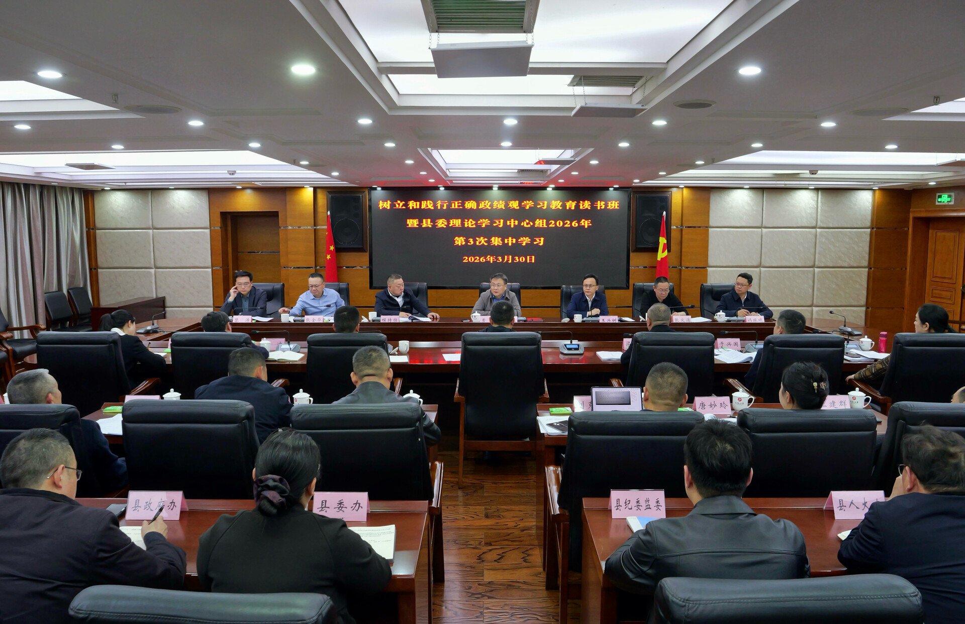 桑植融媒3月30日讯(记者 杨柳)3月30日,树立和践行正确政绩观学习教育读书班暨县委理论学习中心组2026年第3次集中学习举行。副市长、县委书记曹飞主持学习,全体在家县处级领导参加。