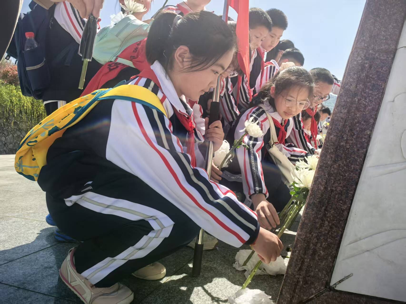 随后,师生们手持鲜花,缓步绕行纪念碑一周,向革命英烈敬献鲜花,鞠躬致敬。