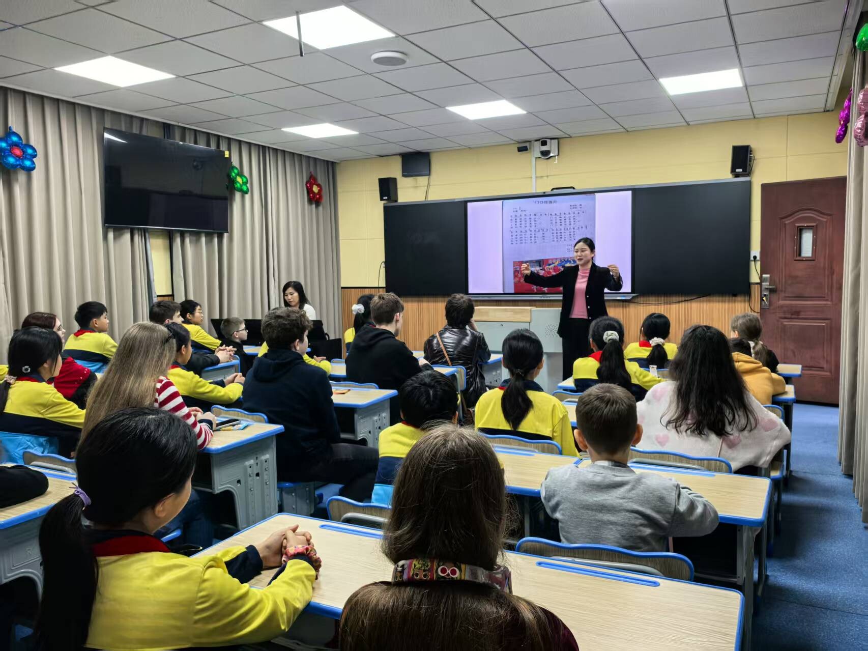 在“共上一堂特色课”环节,中俄学生互教民歌,桑植县刘家坪学校学生教唱桑植民歌,俄罗斯学生则用俄语演唱经典民歌《喀秋莎》,课堂成了欢乐的海洋。