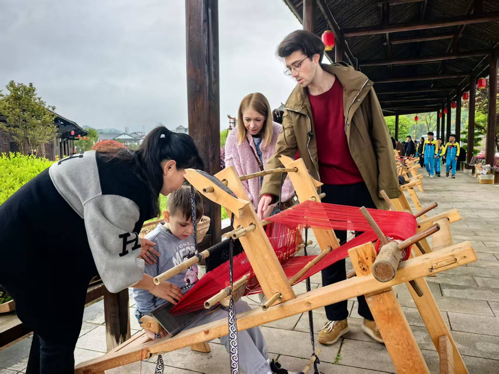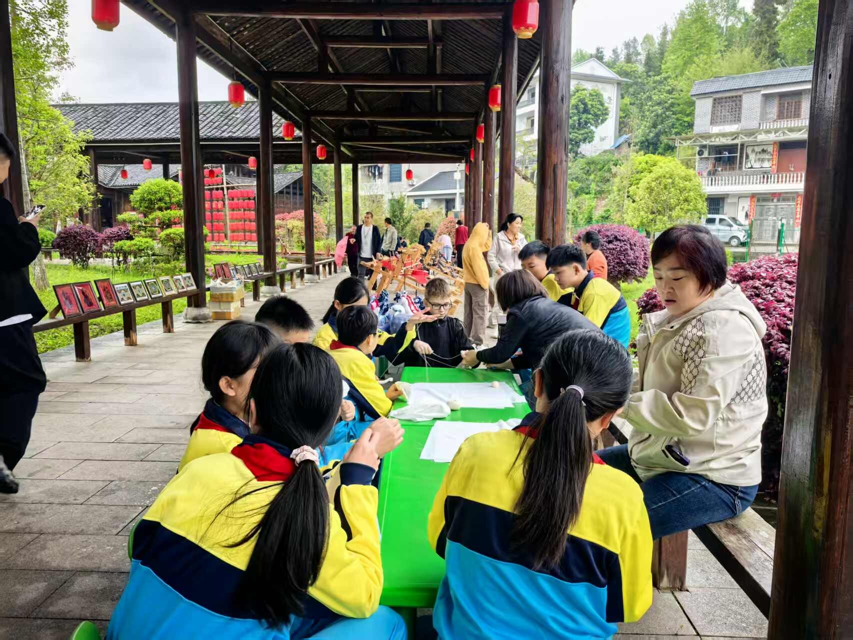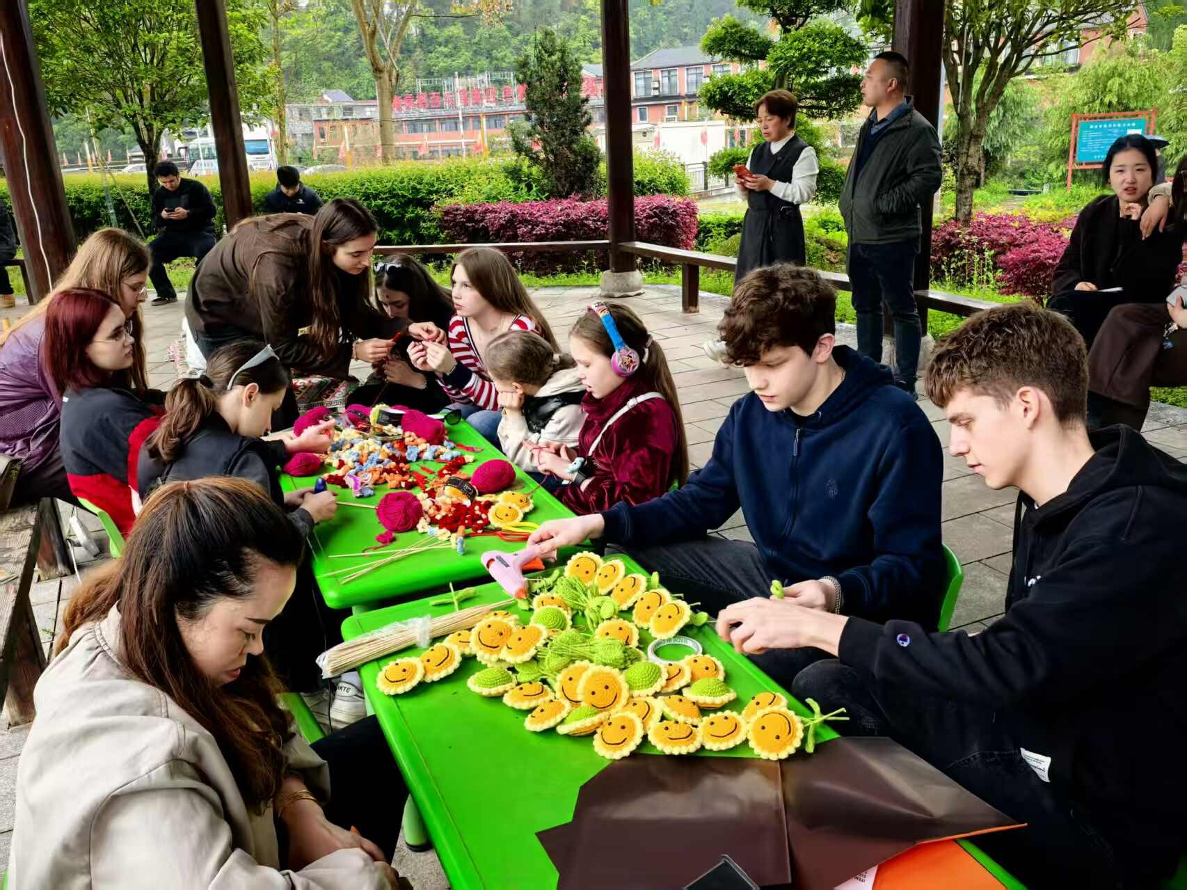 活动第二天,在刘家坪白族乡,学生们走进非物质文化遗产传承体验馆,亲手制作土家族织锦,还在工作人员的指导下尝试编草鞋、体验扎染,感受非遗的独特魅力。俄罗斯国家预算545公立中学汉语老师尤里表示:“学生们很珍惜这次机会,学做这些手工,感受中华民族文化,做草鞋、织布,他们都很喜欢。”