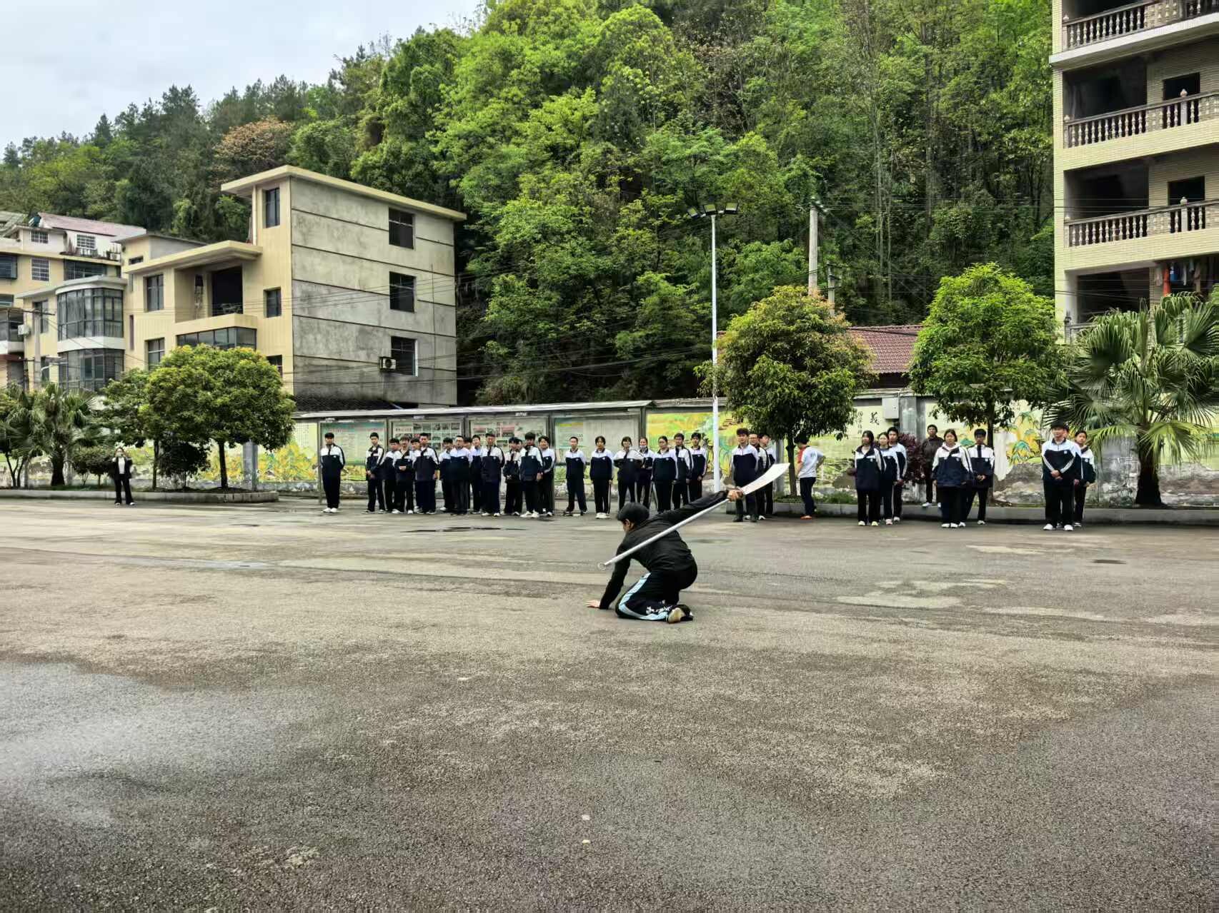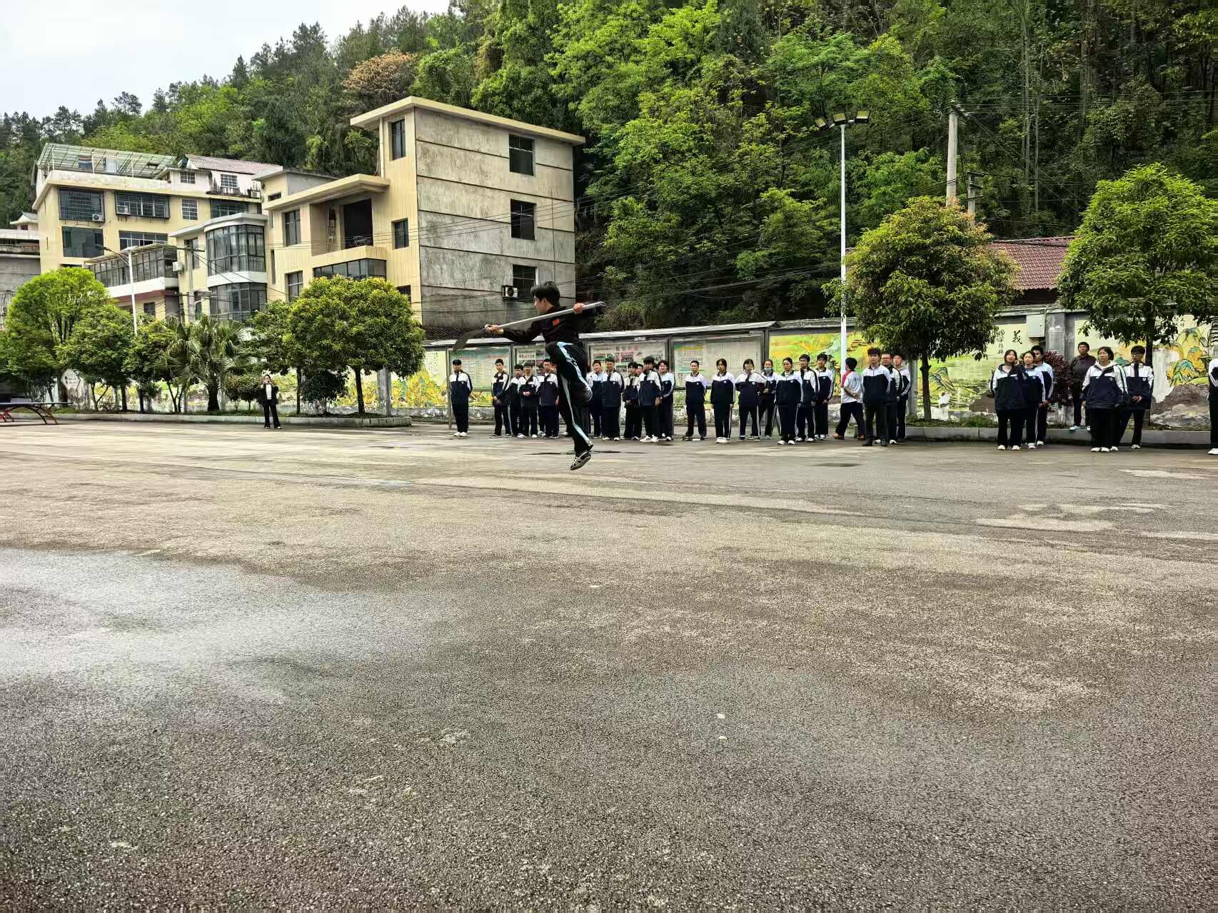 启动仪式结束后,首先由德兴高级中学全体学生集体展示武术操。伴随着激昂的鼓点,数百名学生动作整齐划一,冲拳、推掌、踢腿、跳跃,刚劲有力又不失少年灵动,一招一式间尽显德兴“文武兼修”的日常教学成果,俄方师生纷纷举起手机记录,惊叹声此起彼伏。