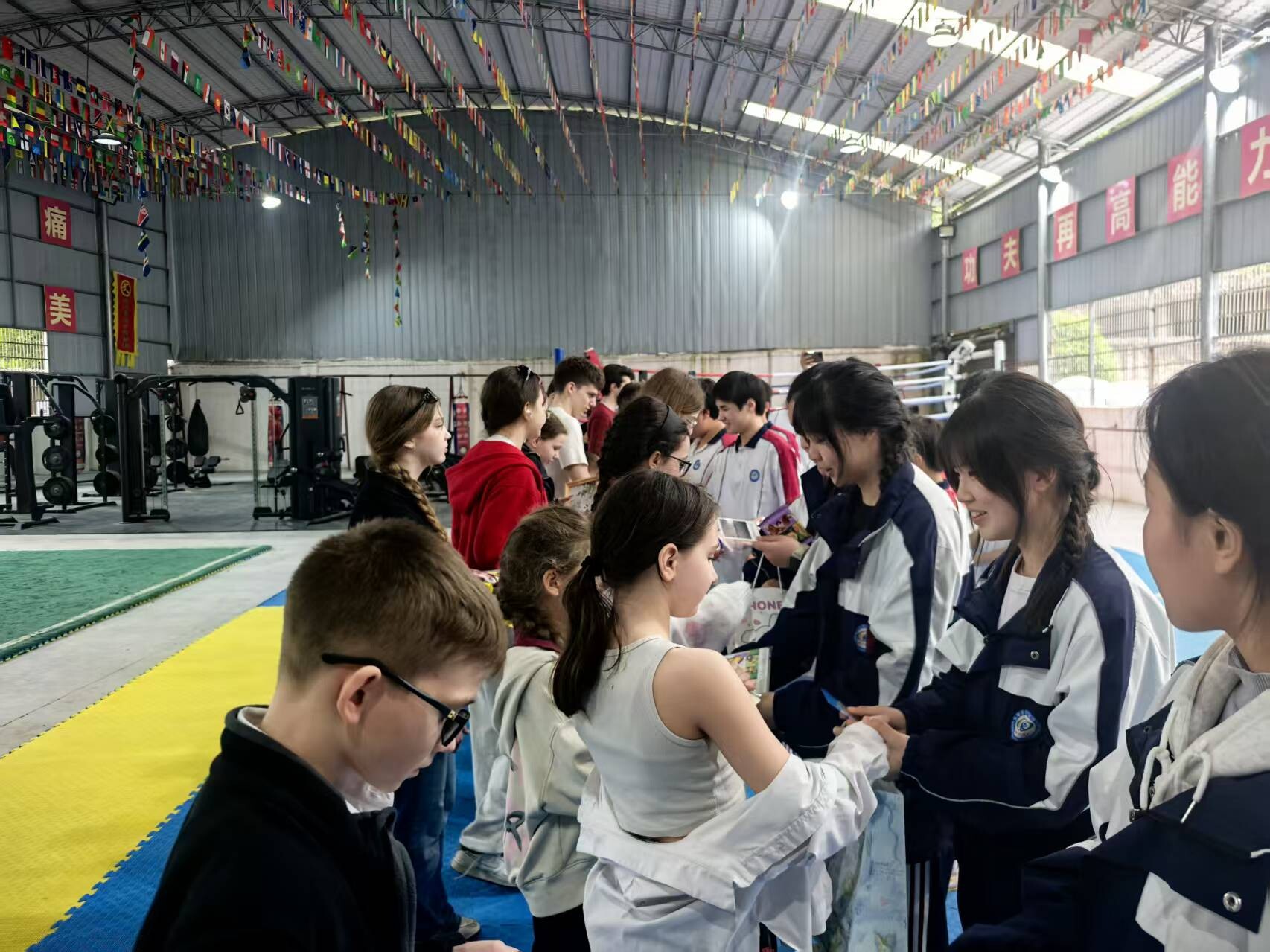 展示结束后,中俄学生进入互学环节。德兴学生化身“小教练”,手把手教俄罗斯学生学习武术基本套路。俄方学生学得格外认真,虽然动作尚显生涩,但一招一式毫不含糊。学习间隙,双方学生自发交换了各自准备的小礼物。“有朋自远方来,不亦乐乎。今天,我们希望用一套拳、一份礼、一颗心,让俄罗斯学生们感受到中国少年的热忱。希望他们能把桑植当成在中国的第二个家。”桑植德兴高级中学学生龚婧雯说道。