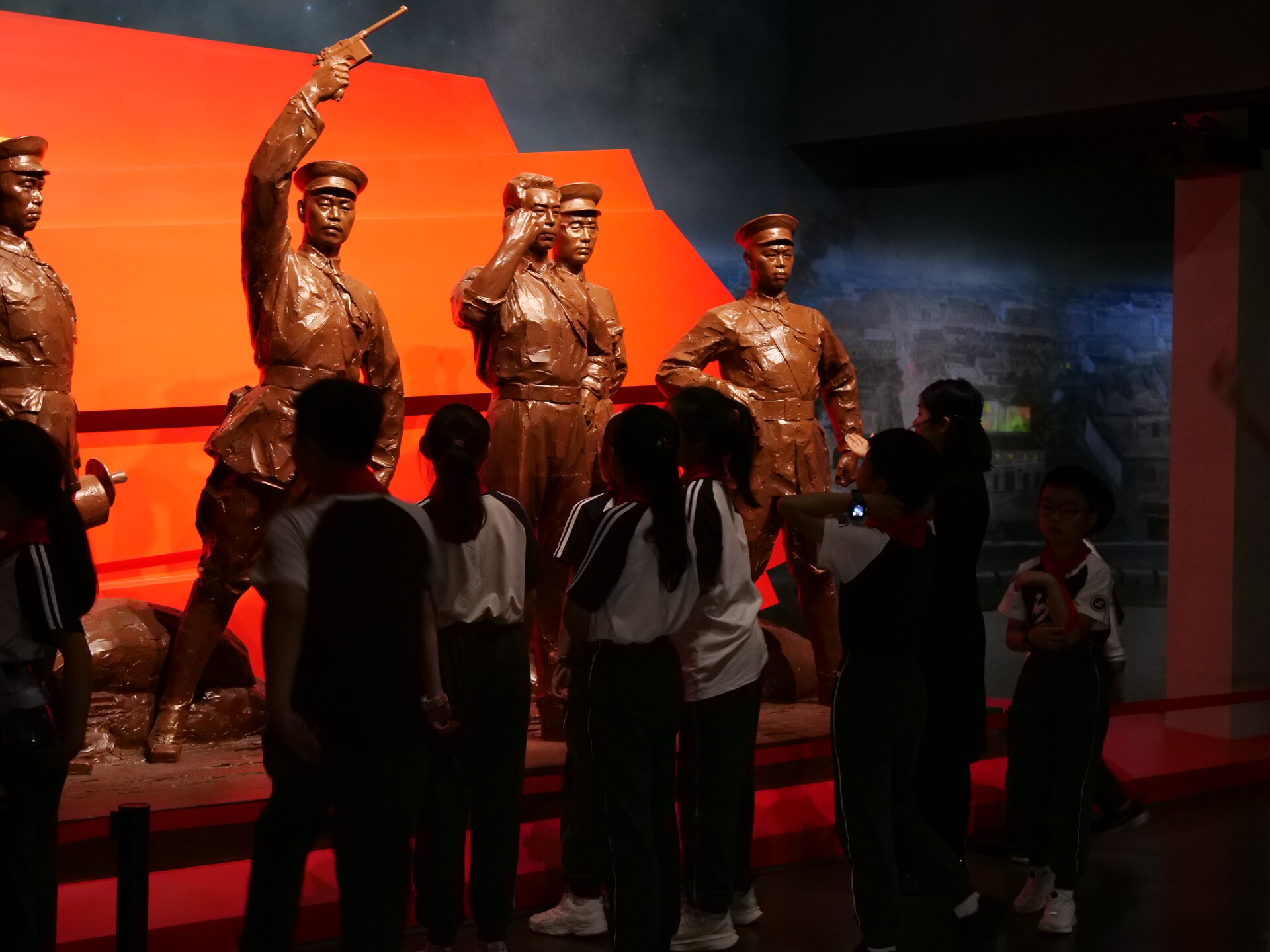 在贺龙故居和贺龙纪念馆,孩子们驻足凝视文物展品,聆听革命故事,了解贺龙元帅从桑植骄子到开国元帅的光辉历程。下午,《伟大的远征》思政大课上,从“信仰”到“导行”的篇章讲述,让孩子们对长征精神有了更深刻的理解。最受孩子们欢迎的,是沉浸式模拟行军拉练:“桑植誓师”“巧渡金沙江”等场景互动,让他们亲身感受红军长征的艰辛与不易。