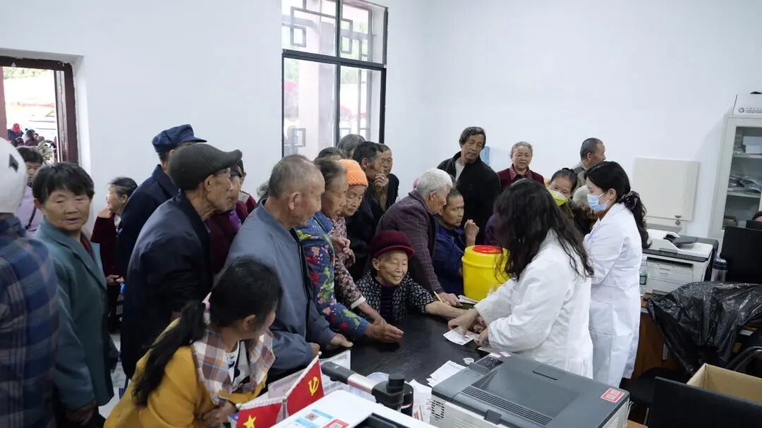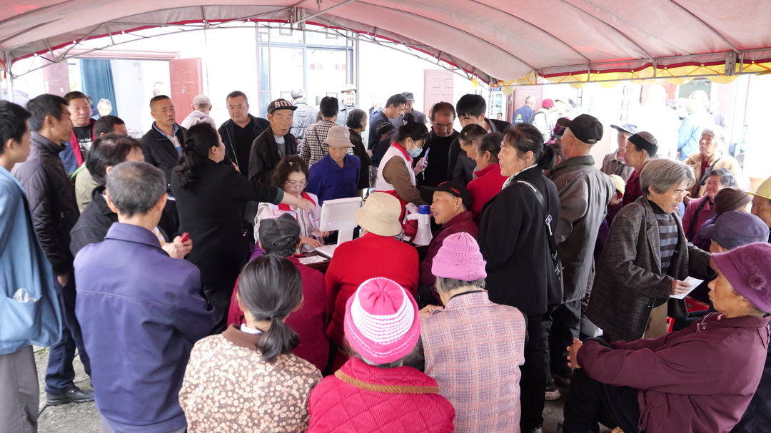 清晨,前来体检的老人们在村部工作人员和医务人员的引导下,有序排队开展信息登记、血液采集、血压测量等项目,现场秩序井然。医务人员耐心讲解检查流程,细致询问老人身体情况,并给出针对性的健康建议。