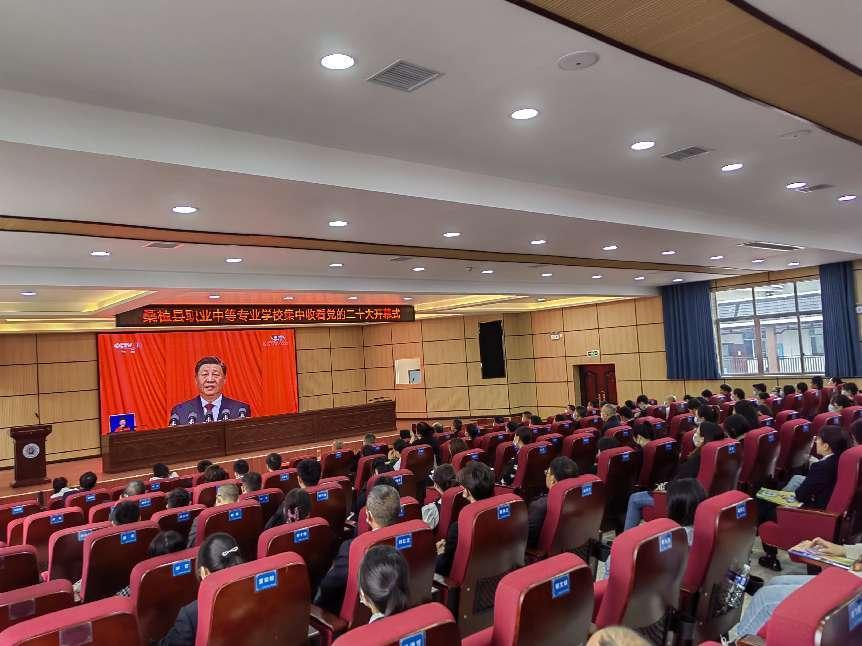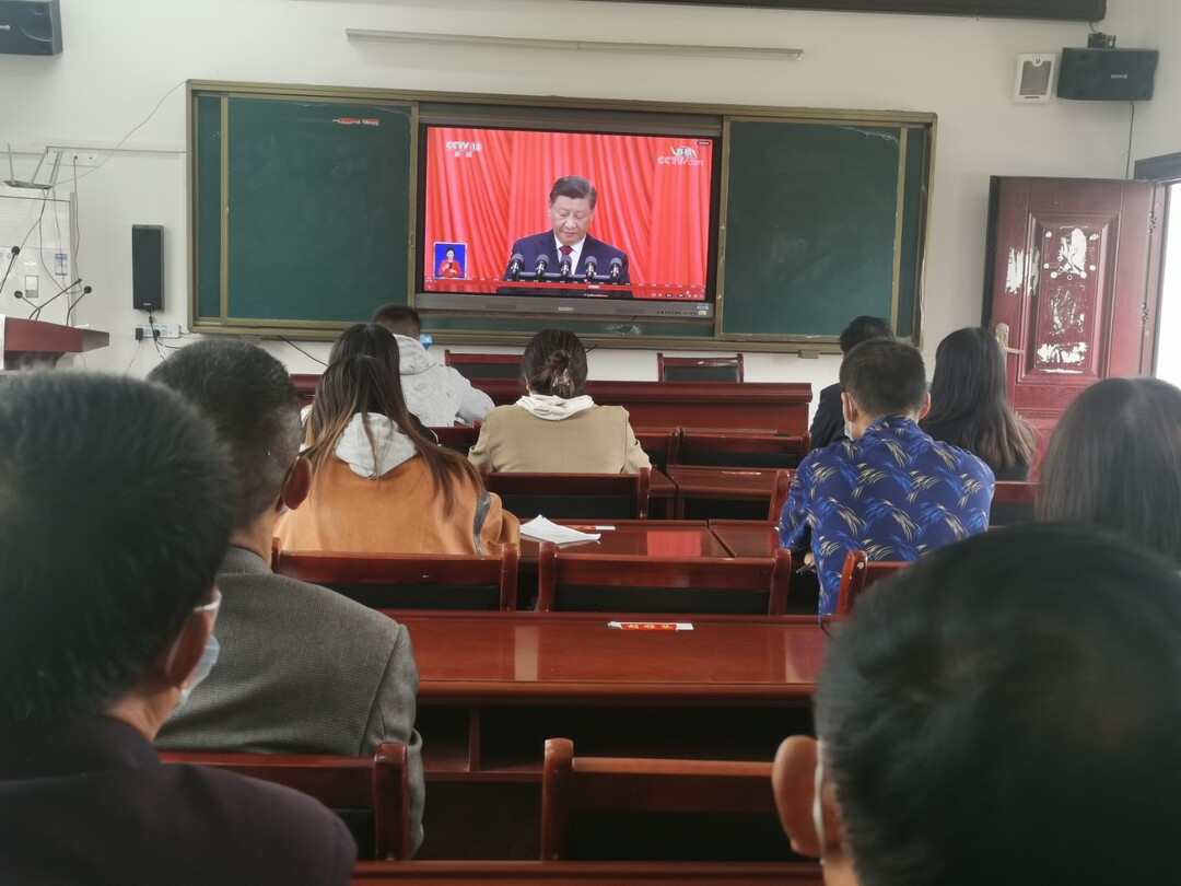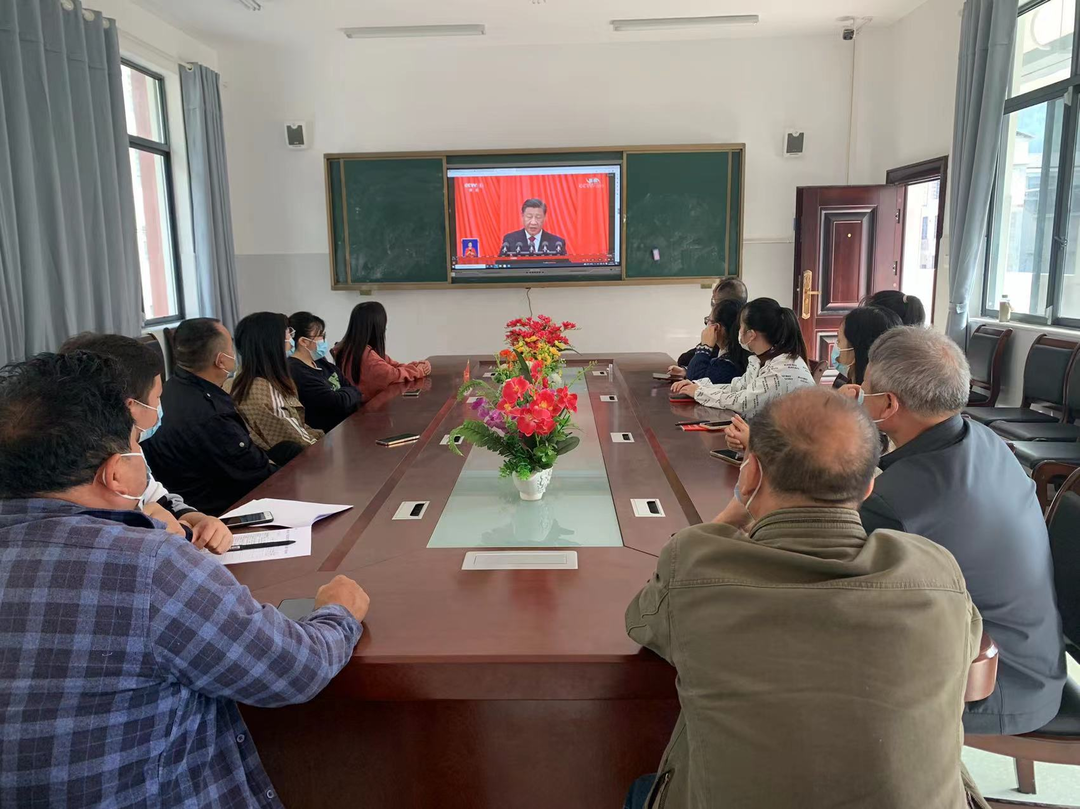 廖家村学校全体教职工集中收看党的二十大开幕会盛况,大家仔细聆听习近平代表第十九届中央委员会向大会的报告,认真记录,深受鼓舞,不时报以热烈的掌声。