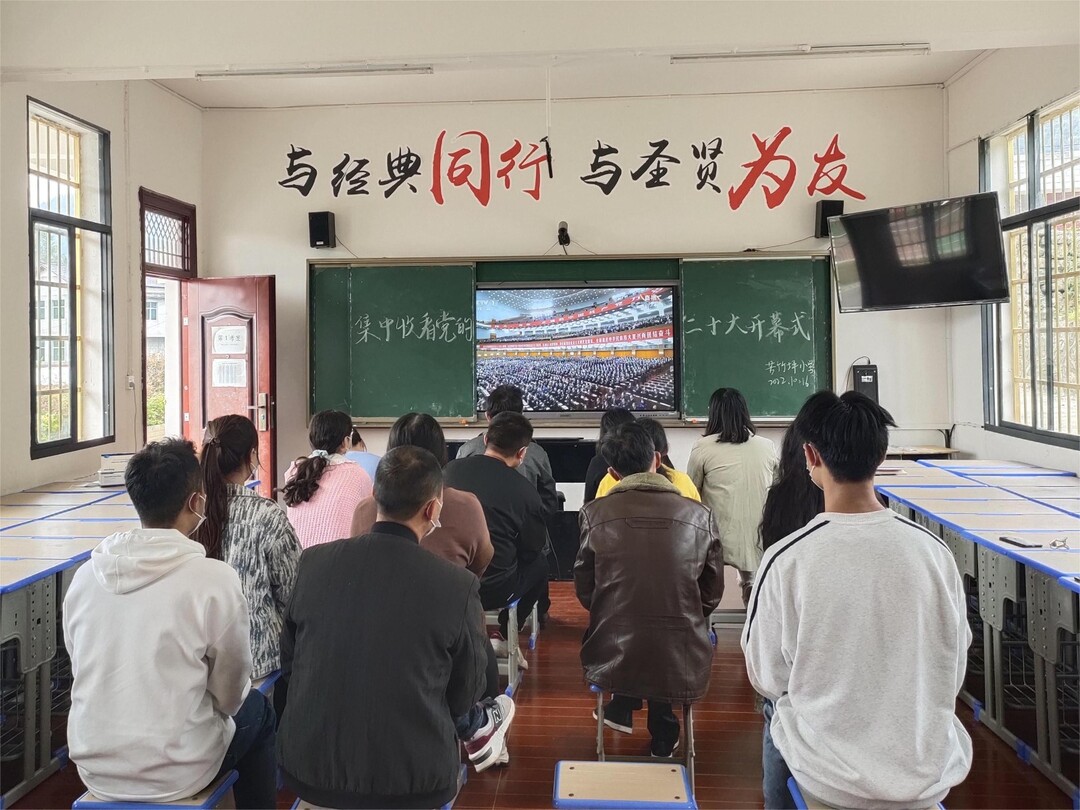 苦竹坪小学全体师生集体收看二十大开幕会盛况,听报告、谈感受、畅未来。