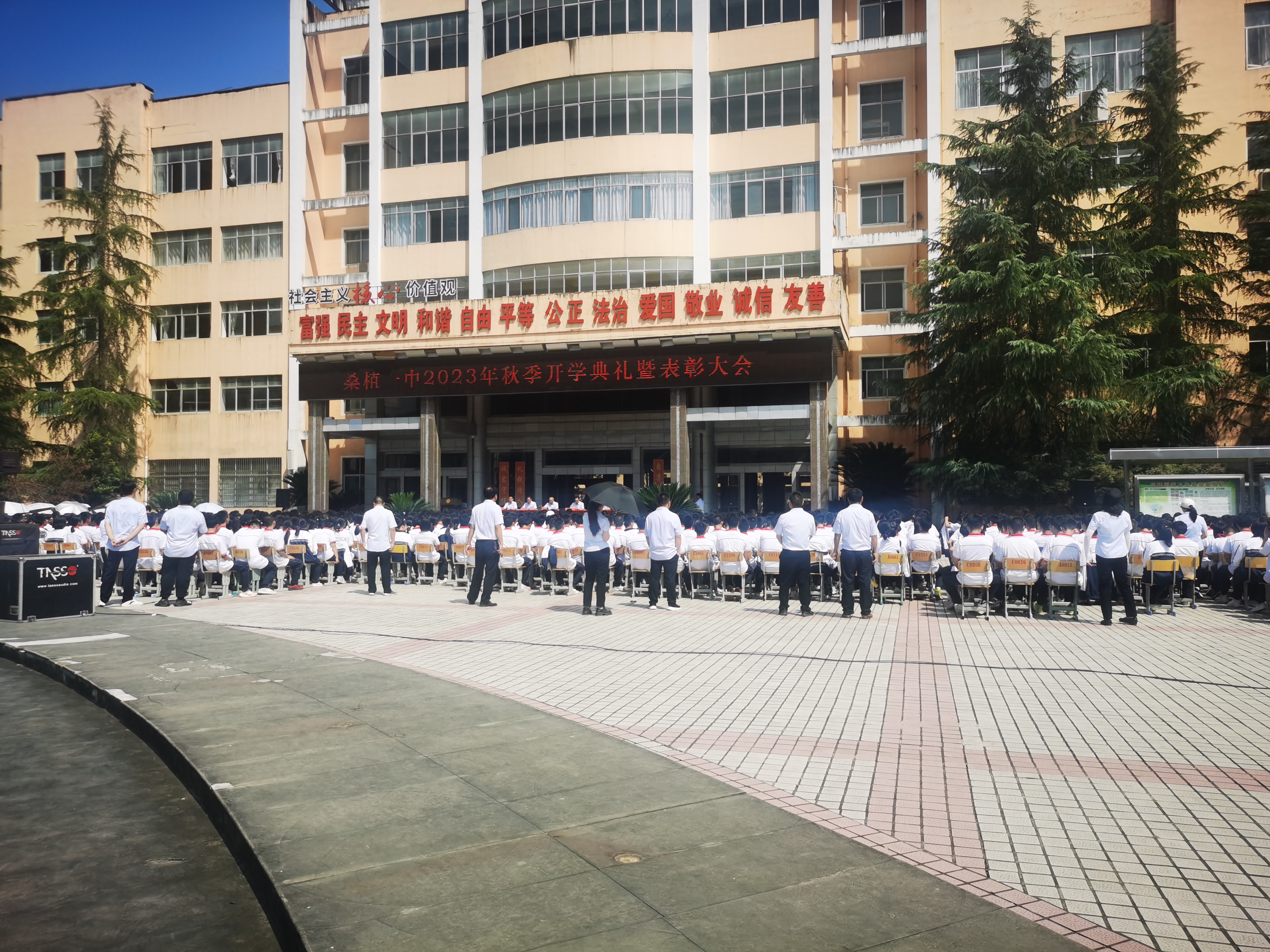 桑植融媒9月6日讯(记者 张思)9月6日,桑植县第一中学举行2023年秋季开学典礼暨表彰大会,全校教职员工及学生欢聚在操场上迎接新学期的到来。