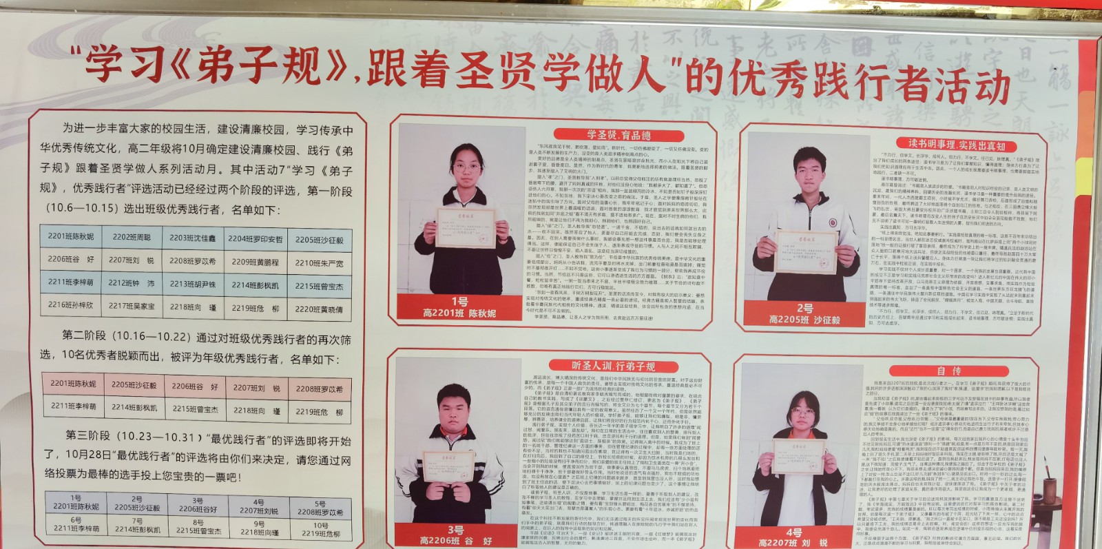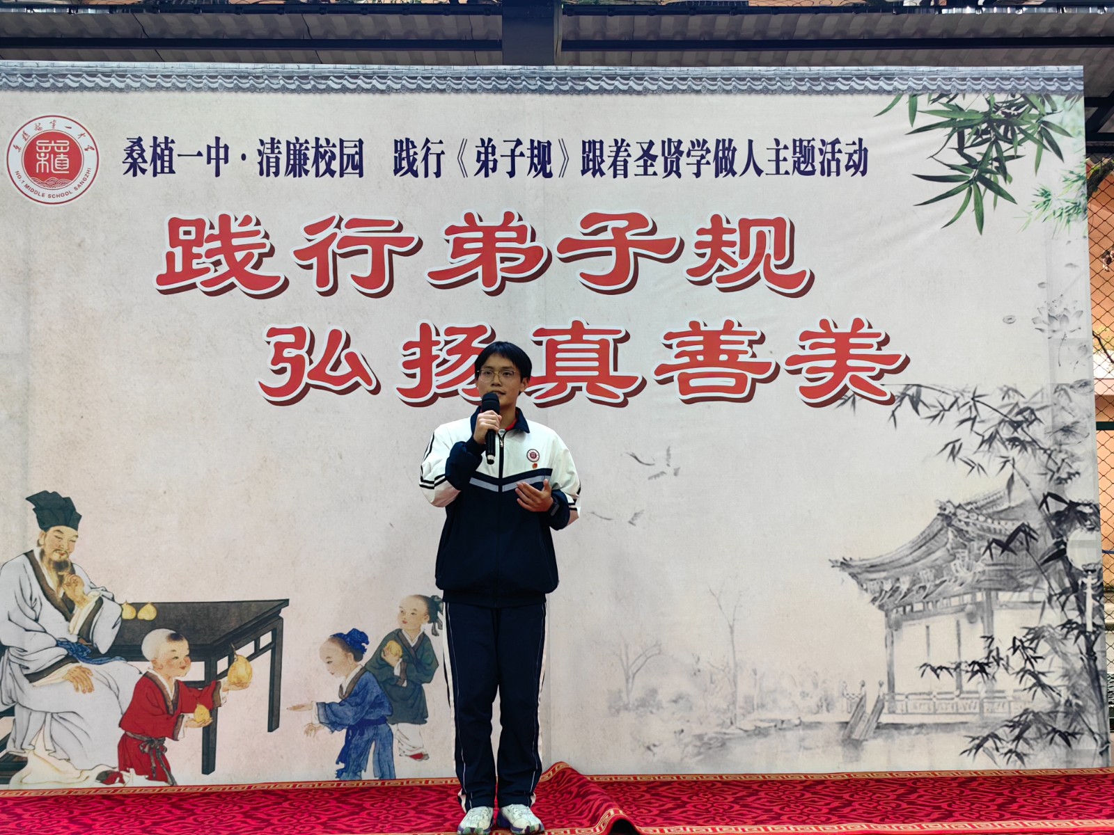 近年来,该校努力寻找廉洁文化与校园文化建设的结合点,确定了将廉洁教育与传统文化教育相结合的工作思路。今年,桑植一中将10月确定为建设清廉校园、践行《弟子规》跟着圣贤学做人系列活动月。