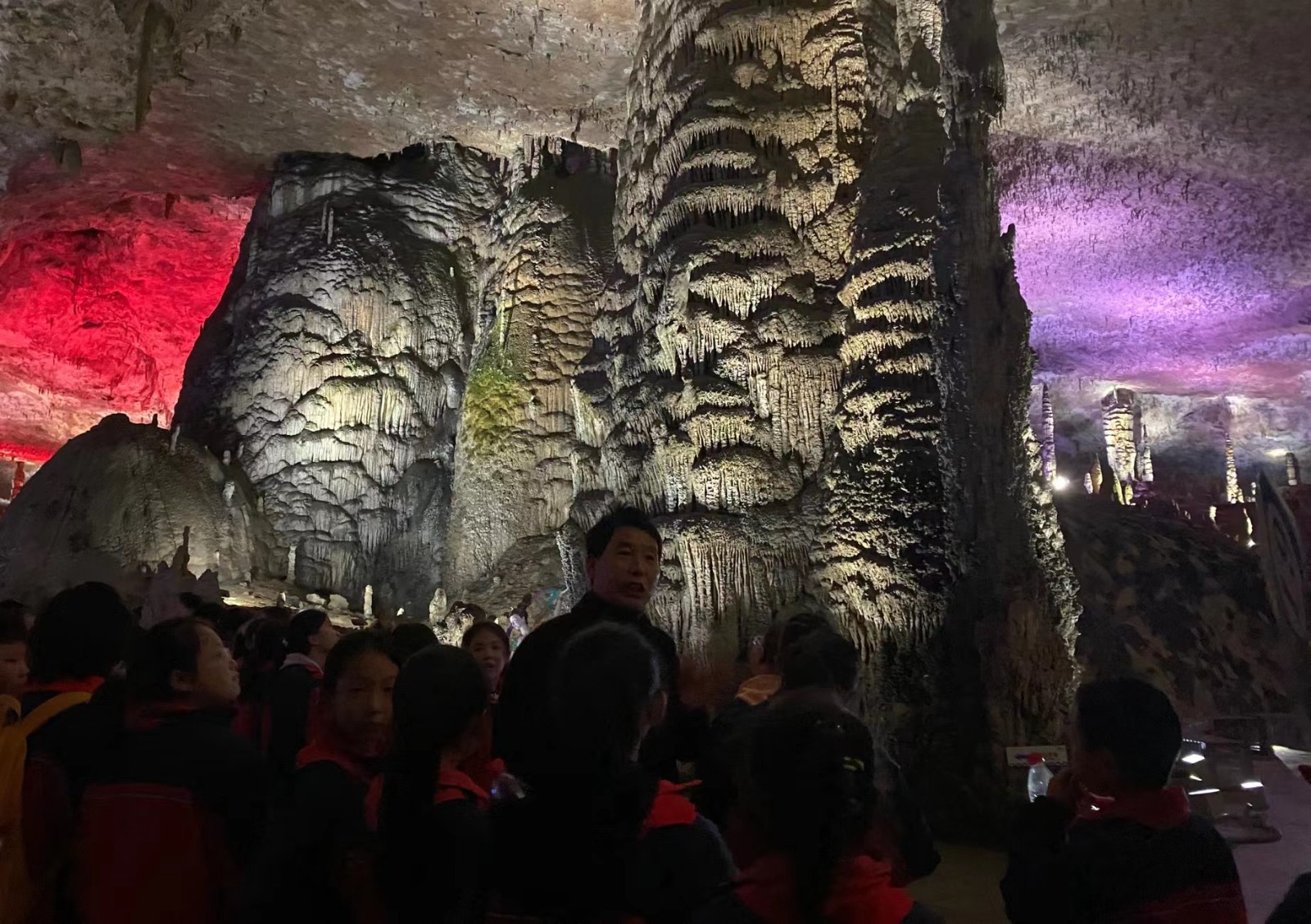 为进一步激发学生对自然科学的兴趣,当天下午,该校还组织学生游览九天洞,近距离观察不同形态的钟乳石,感受大自然的鬼斧神工。