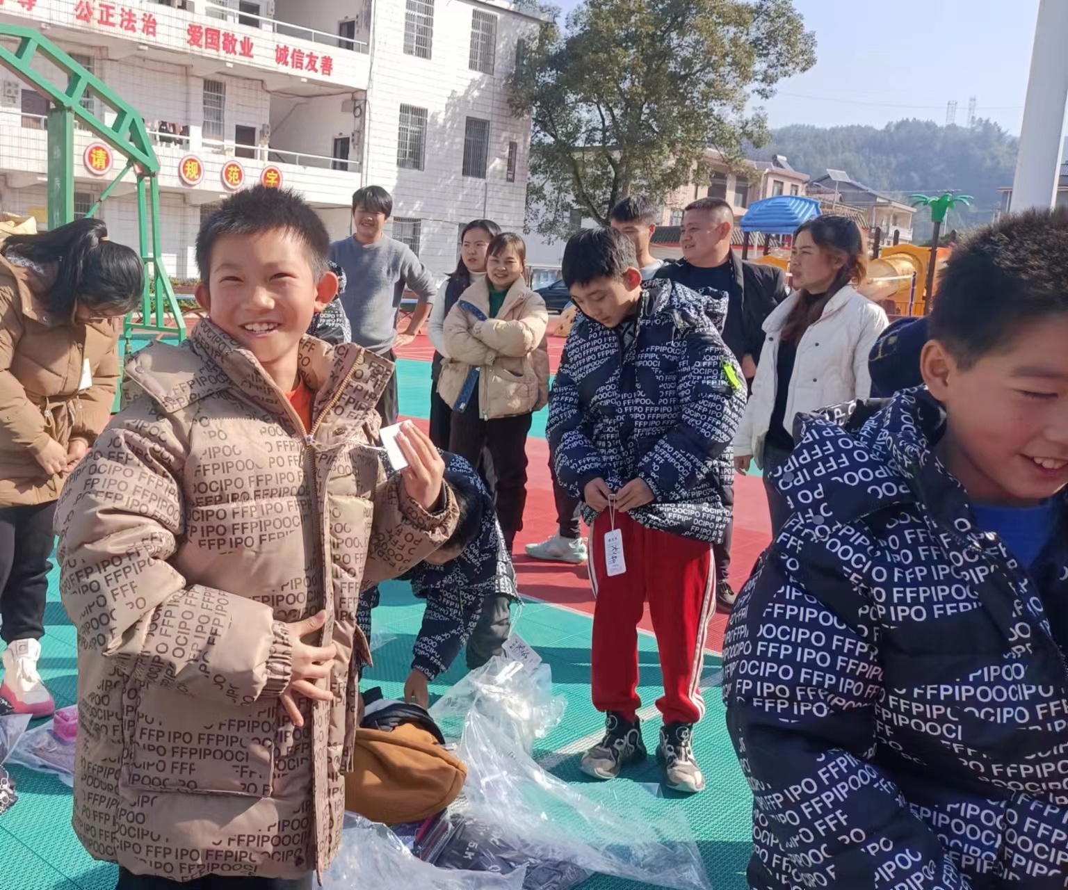 “好漂亮啊,穿上好暖和!”孩子们换上暖和的新衣服,接过崭新的书包和学习用品,分外开心。三年级留守儿童收到保暖棉衣和学习用品时表示一定要好好学习,长大了也要去帮助别人。