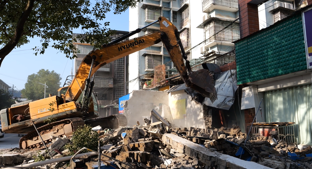 行动现场,执法人员拉开警戒线并在警戒线附近提醒过往行人注意安全,在商户完成商品转移后,挖掘机进场。由于拆除目标房屋挨着居民房屋,挖掘机师傅谨慎地操纵挖机开始工作,经过1小时左右的拆迁,最终澧源镇二小对面地块整体完成了征地拆迁工作。