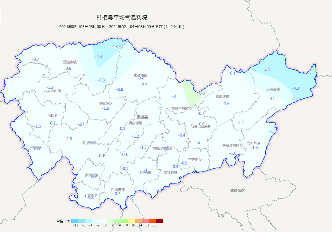 2 月 3 日 08 时-4 日 08 时桑植县平均气温实况